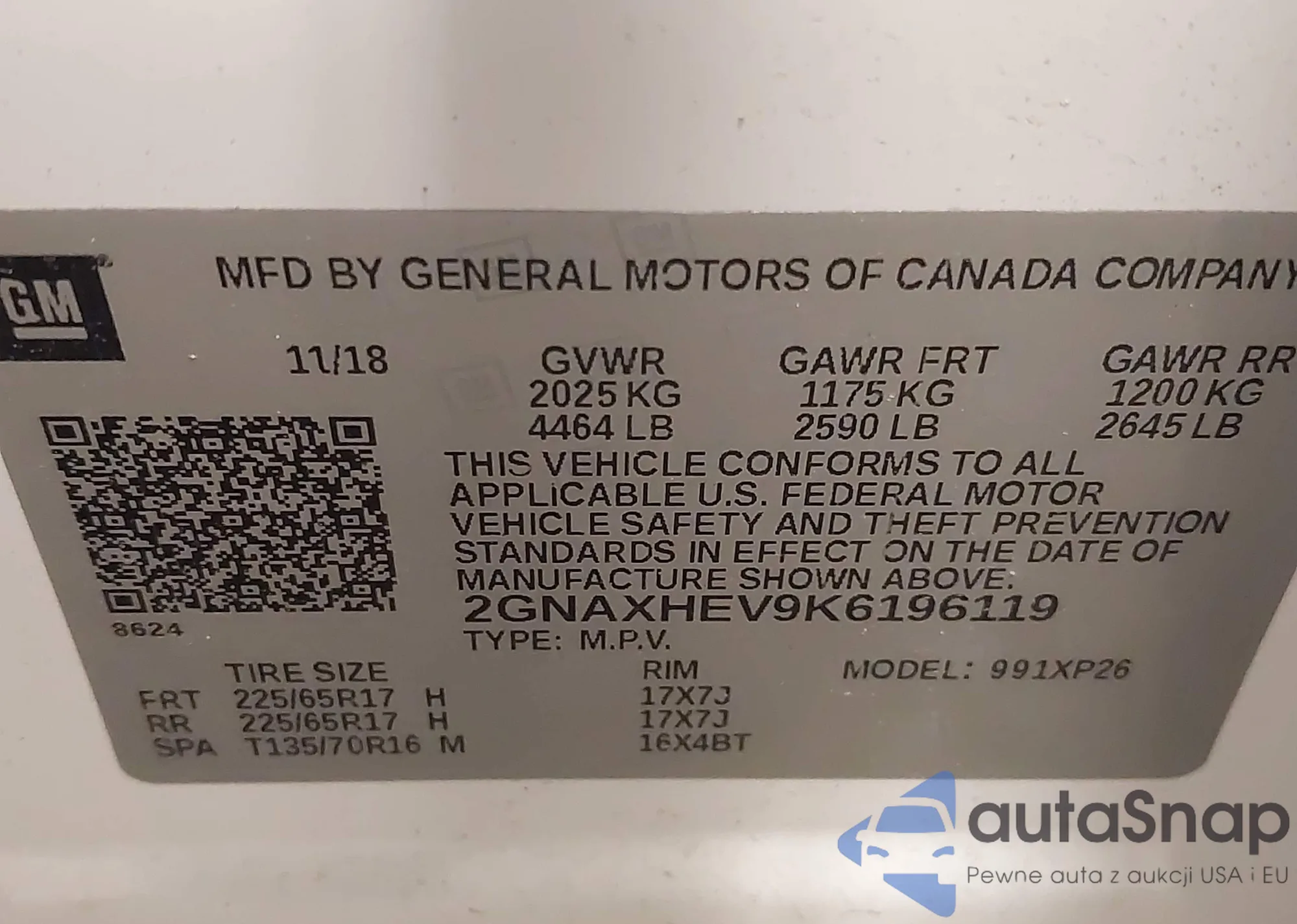 VIN: 2GNAXHEV9K6196119