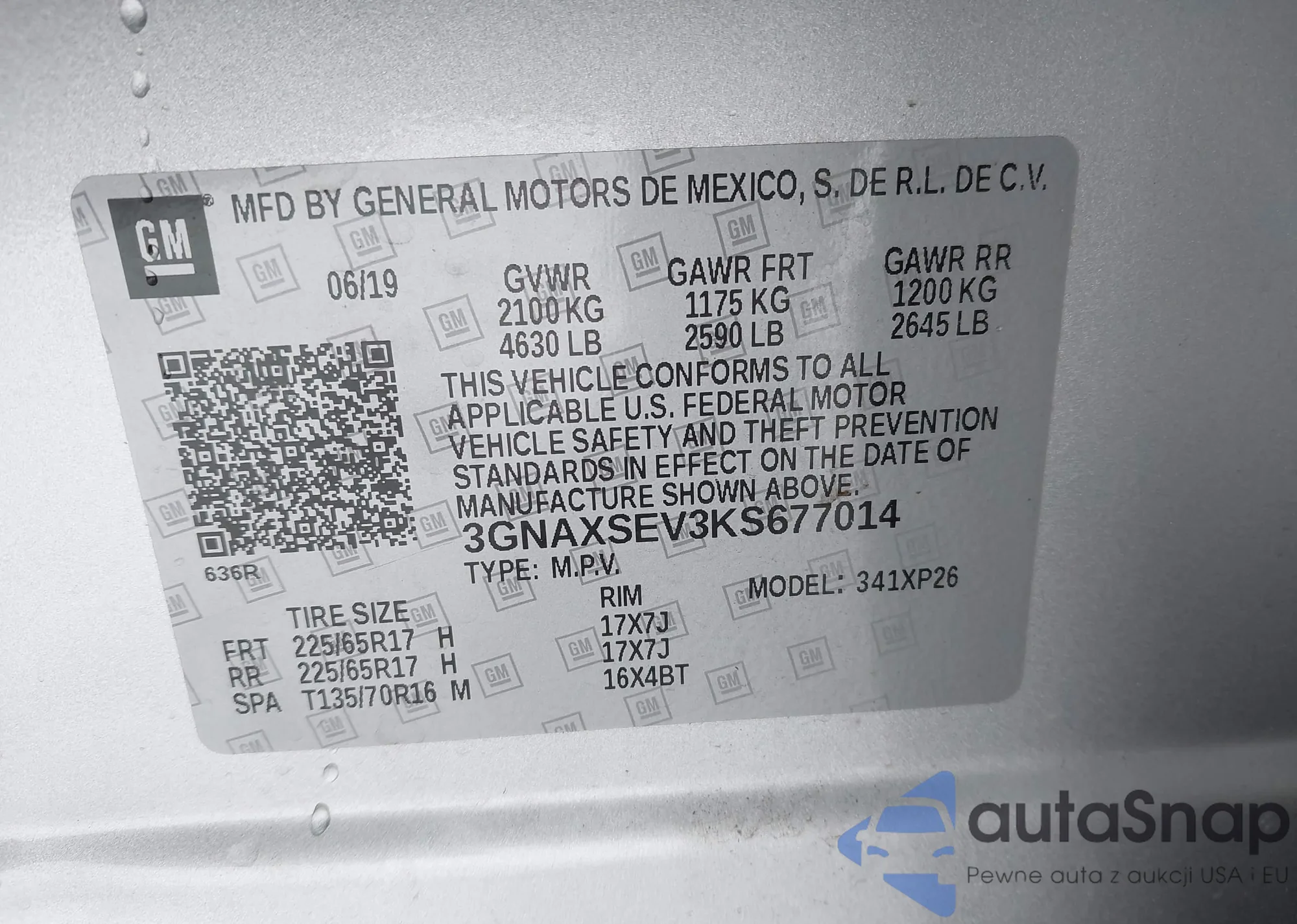 The car Chevrolet Equinox 2019 (VIN 3GNAXSEV3KS677014) has not been auctioned before. The documents are clean, and the mileage matches or is below the market average. Sold by an insurance company – we recommend purchase. Delivery to the port will take approx. 6–8 weeks.