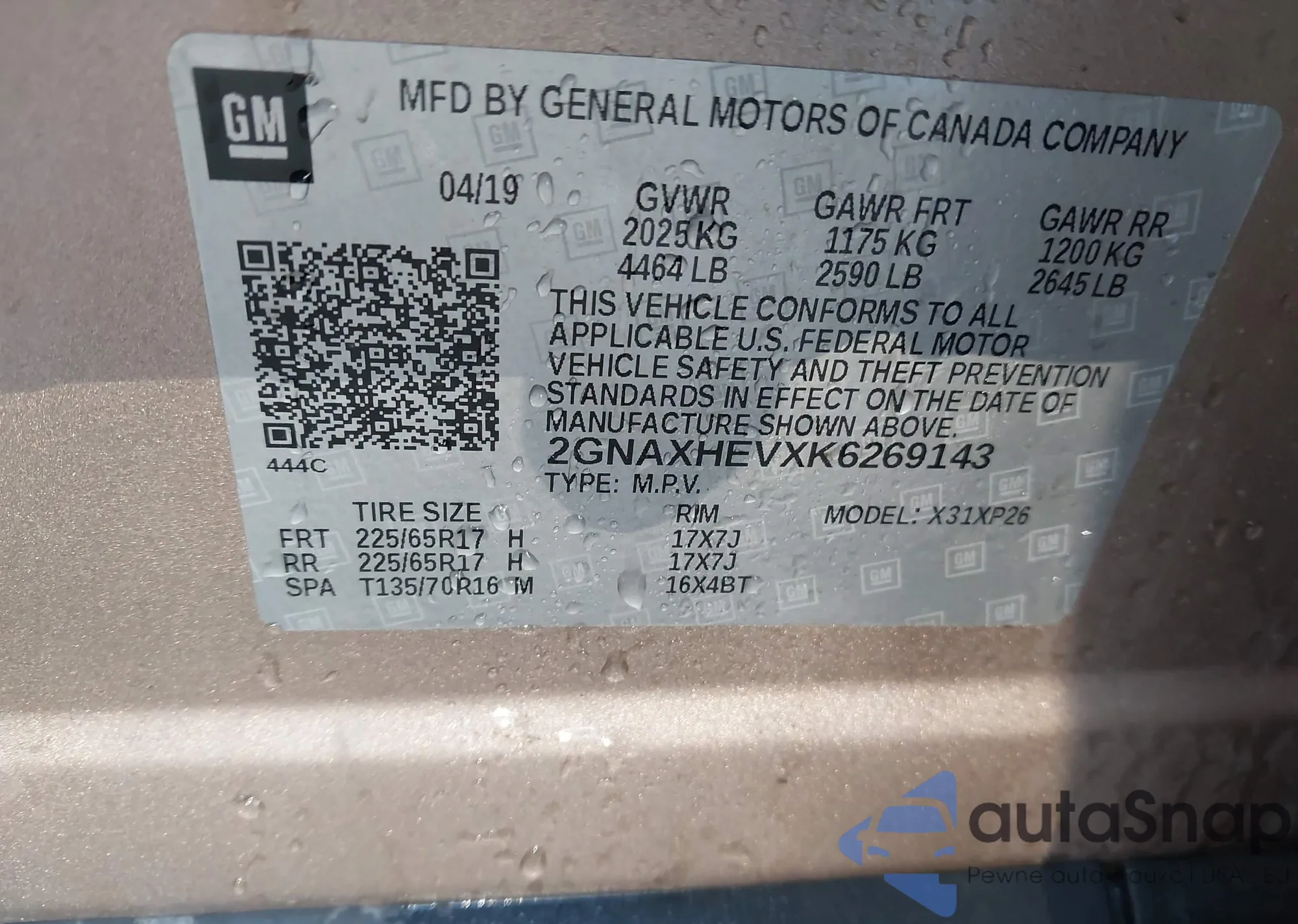 VIN: 2GNAXHEVXK6269143