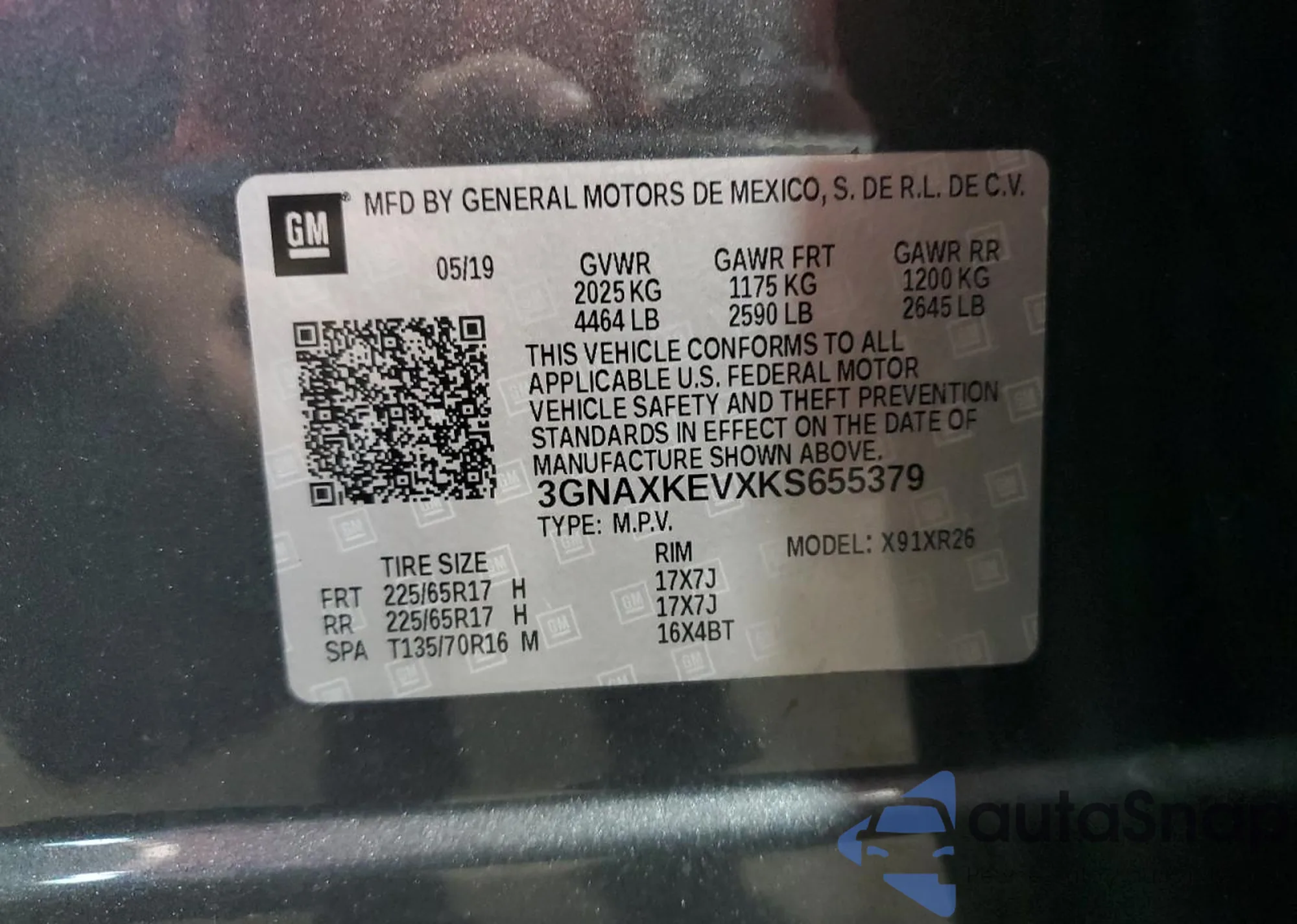 VIN: 3GNAXKEVXKS655379