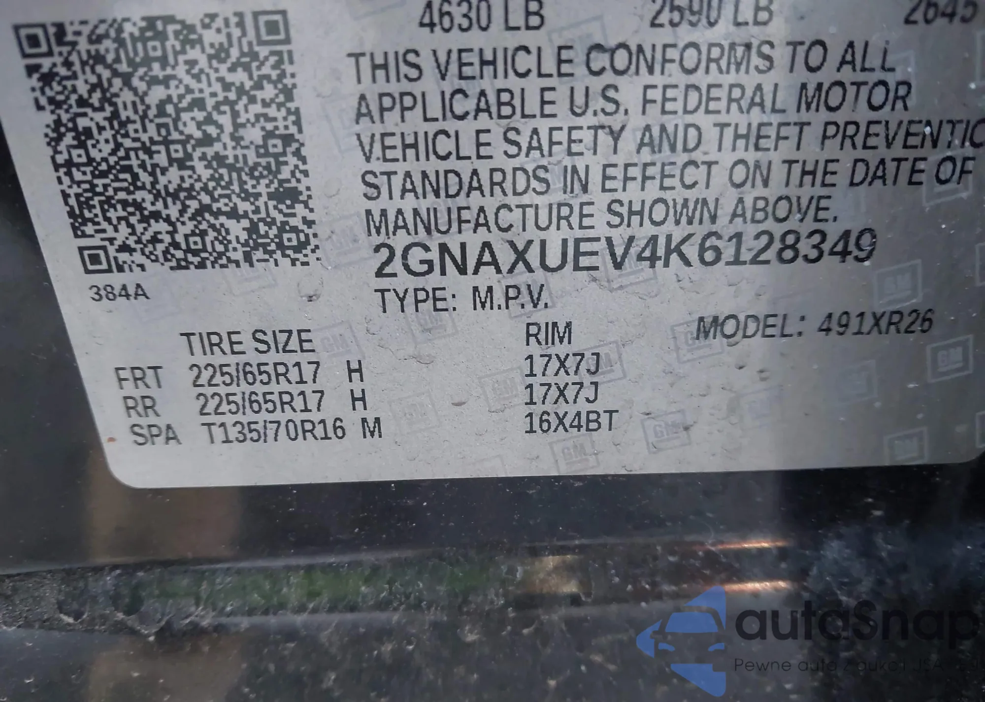 VIN: 2GNAXUEV4K6128349