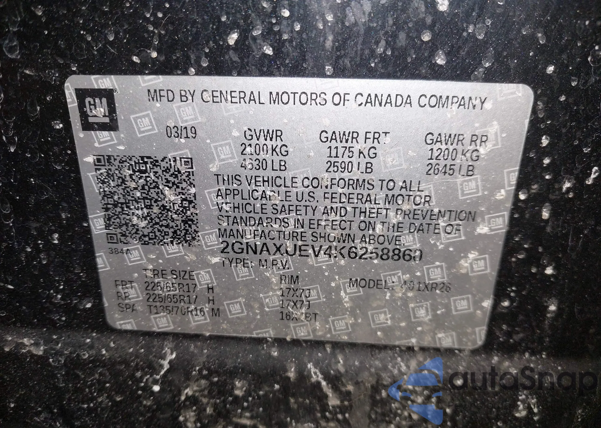 The car Chevrolet Equinox 2019 (VIN 2GNAXUEV4K6258860) has not been auctioned before. The documents are clean, and the mileage matches or is below the market average. Sold by an insurance company – we recommend purchase. Delivery to the port will take approx. 6–8 weeks.