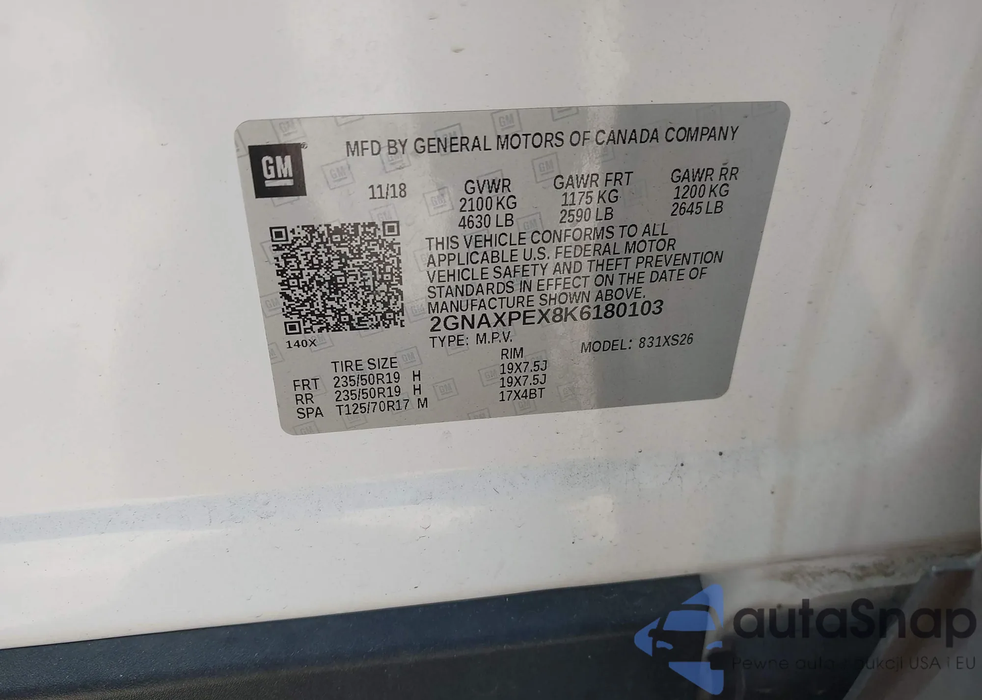 VIN: 2GNAXPEX8K6180103