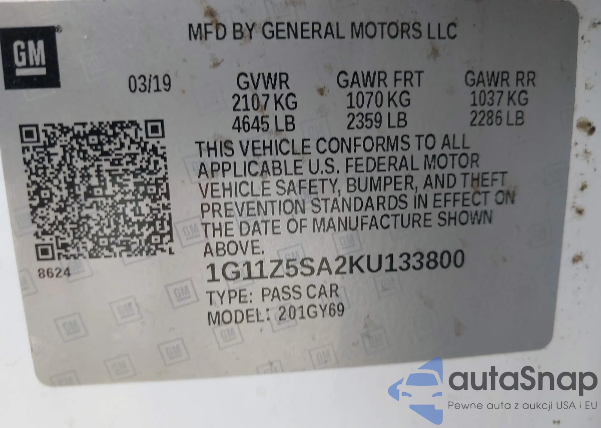 VIN: 1G11Z5SA2KU133800