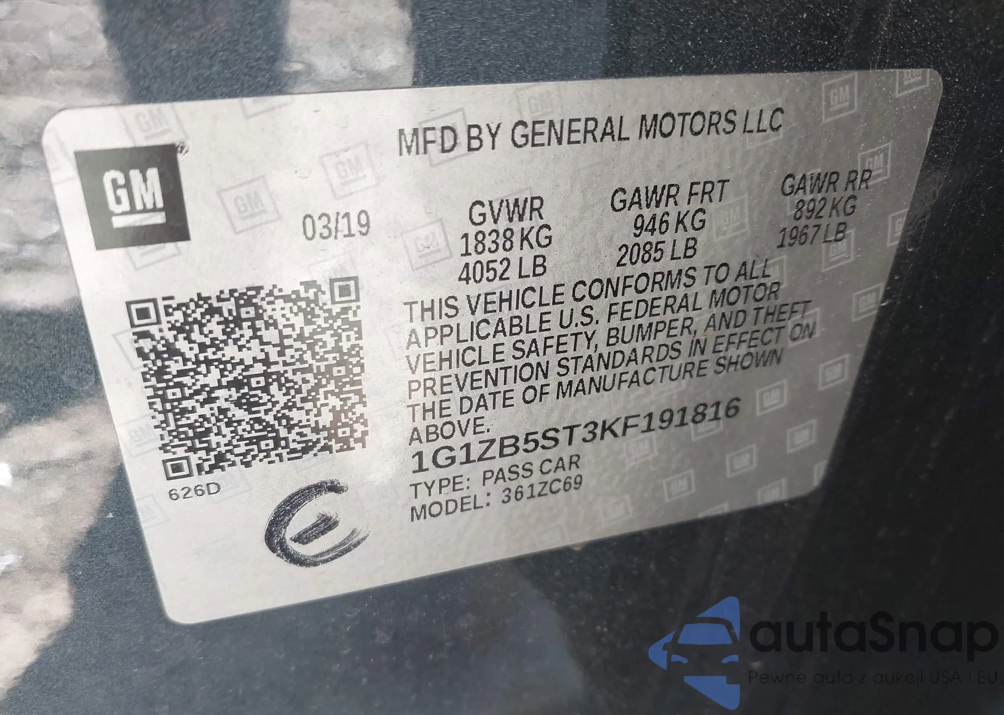 VIN: 1G1ZB5ST3KF191816