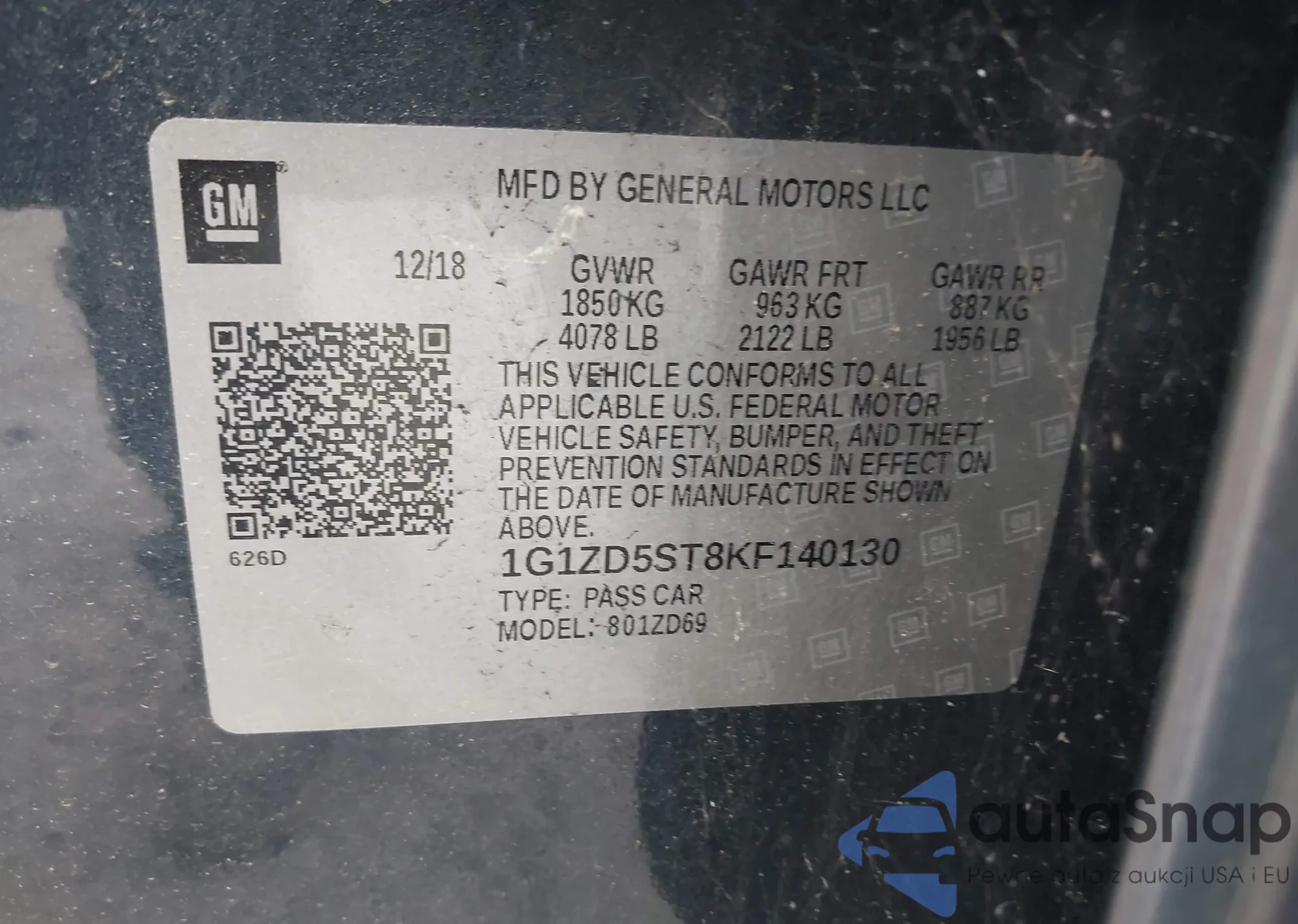 VIN: 1G1ZD5ST8KF140130