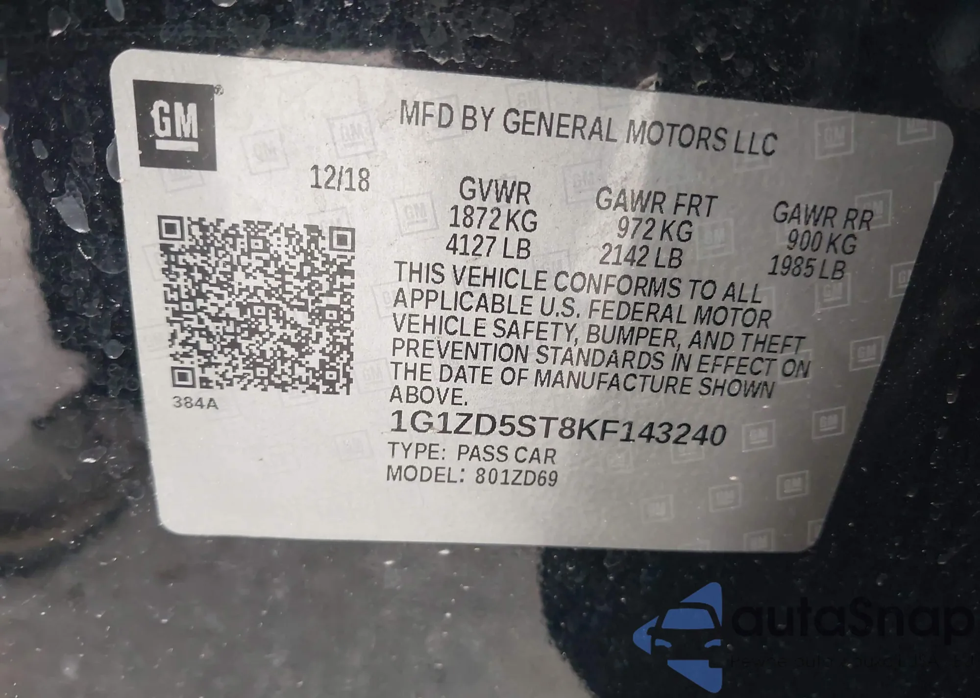 VIN: 1G1ZD5ST8KF143240