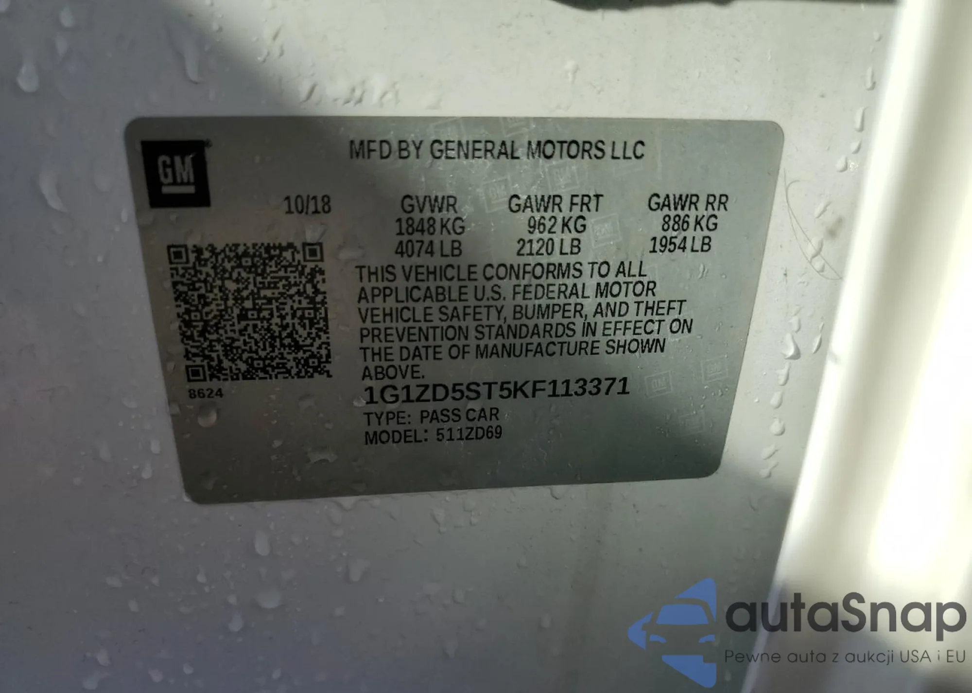 VIN: 1G1ZD5ST5KF113371