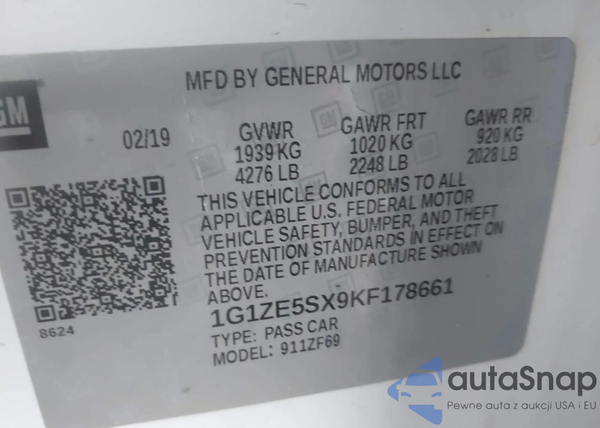 VIN: 1G1ZE5SX9KF178661
