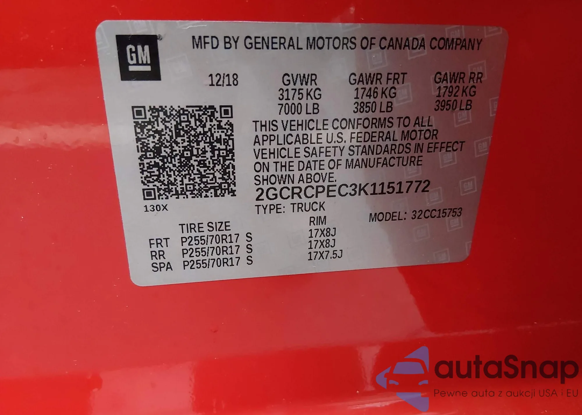 VIN: 2GCRCPEC3K1151772