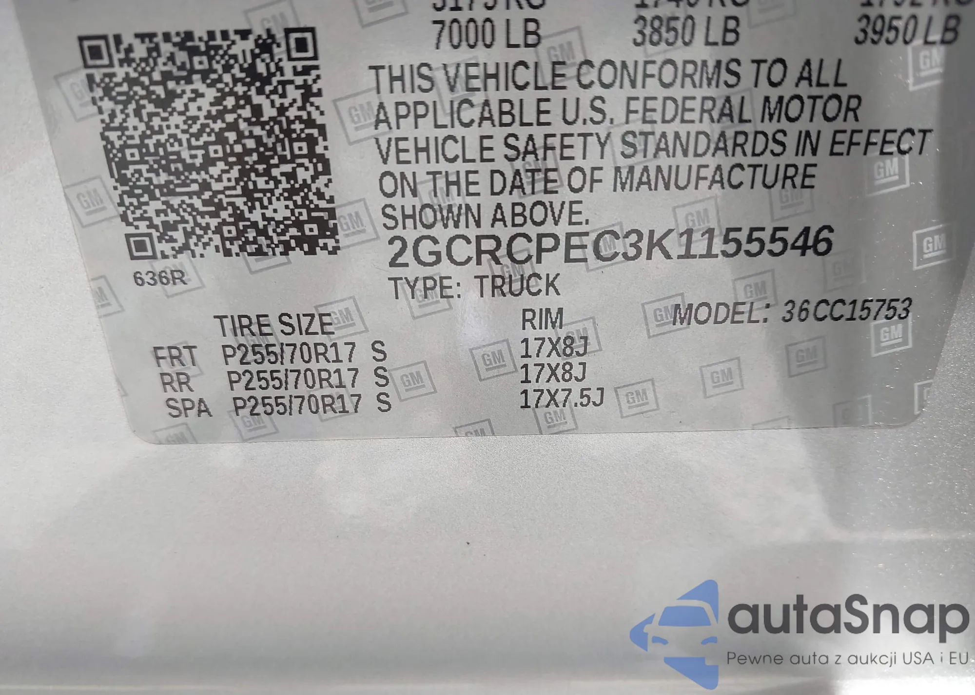 VIN: 2GCRCPEC3K1155546
