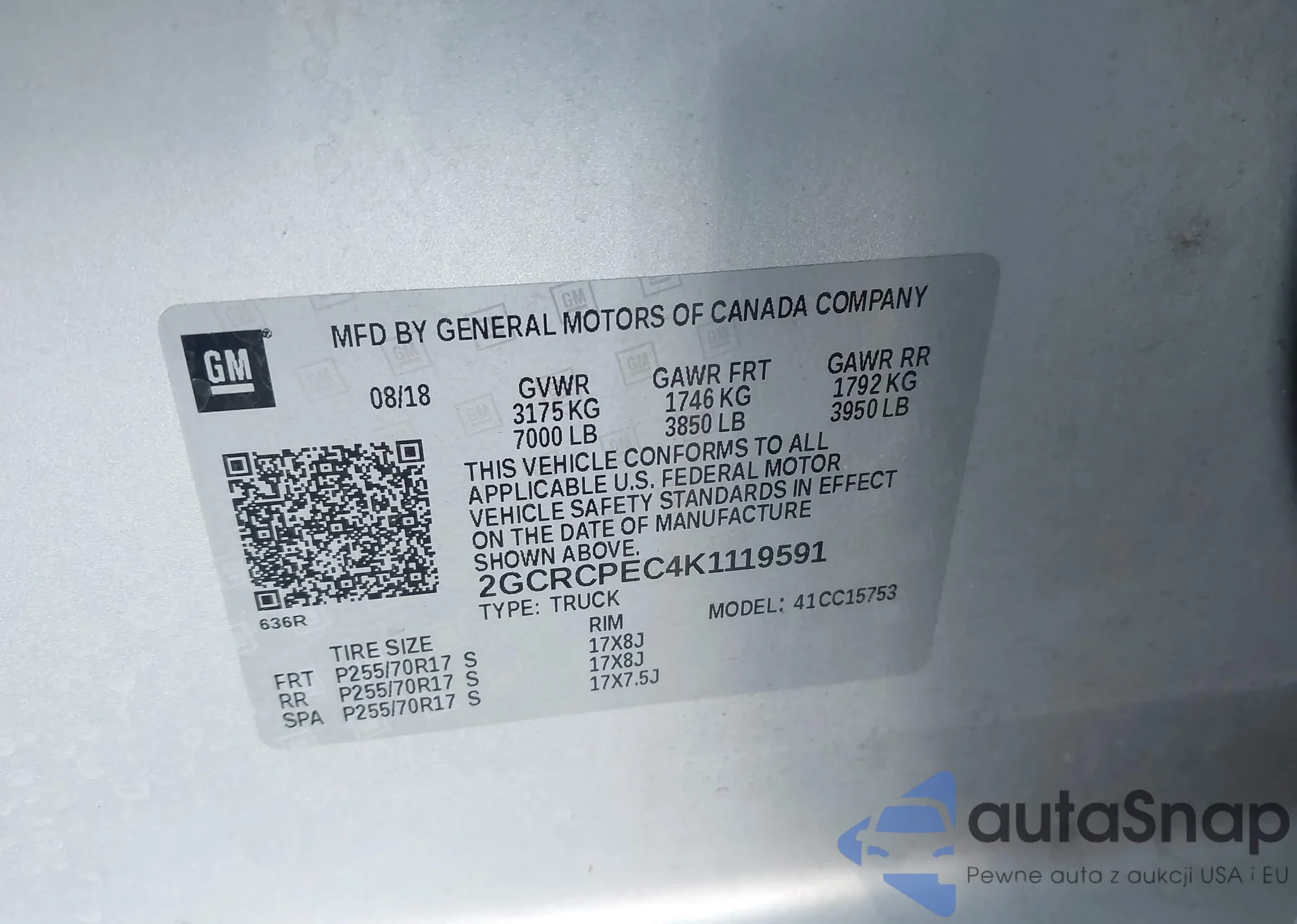 VIN: 2GCRCPEC4K1119591