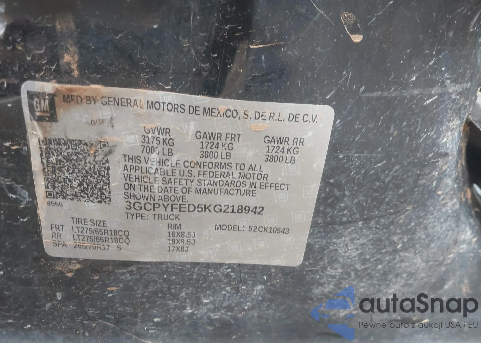 VIN: 3GCPYFED5KG218942