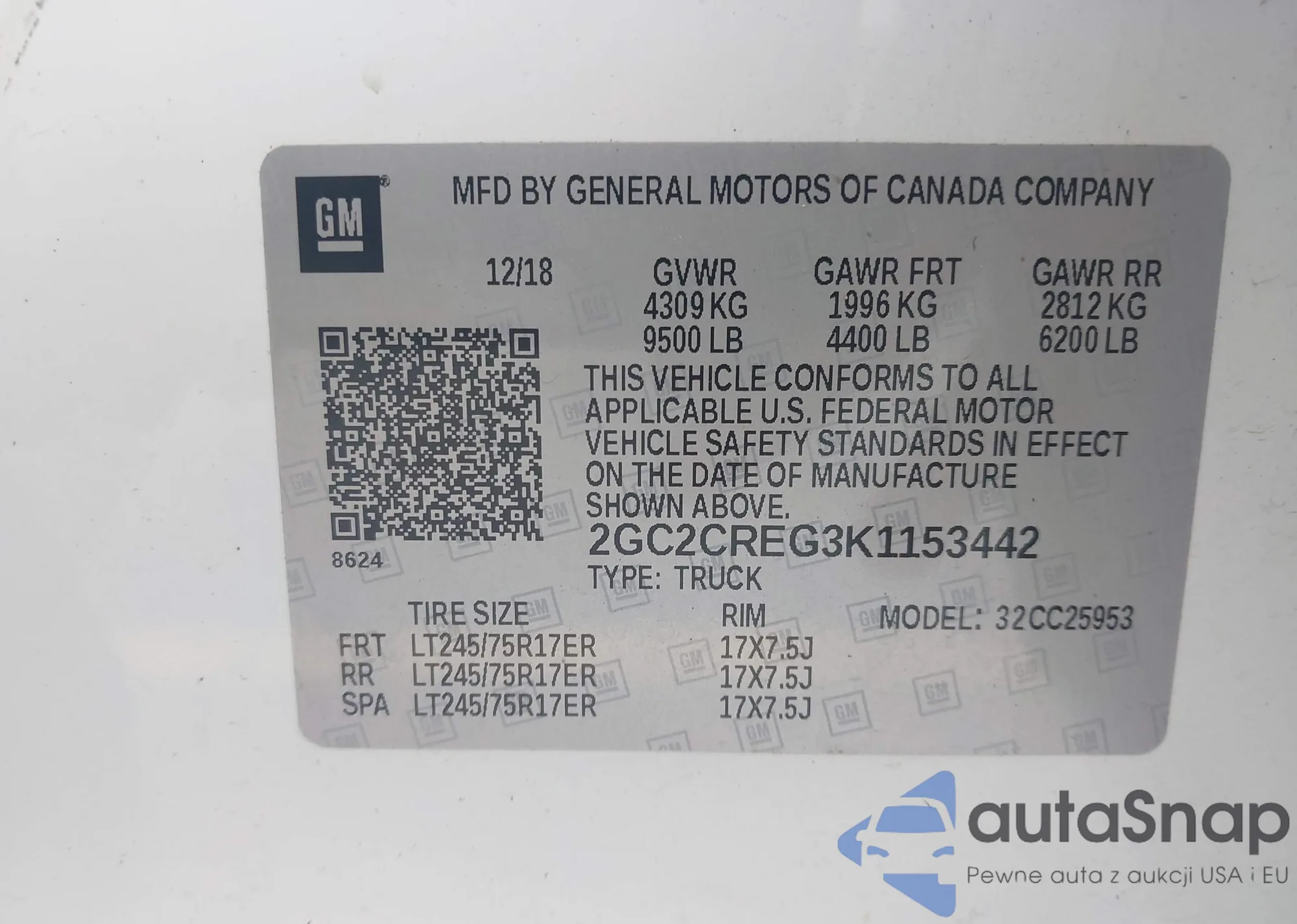 VIN: 2GC2CREG3K1153442