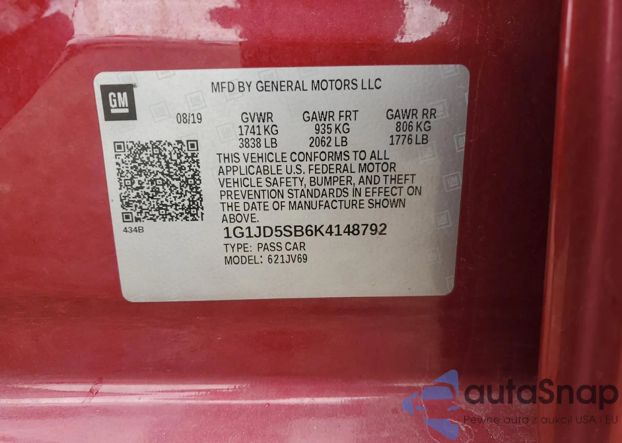VIN: 1G1JD5SB6K4148792