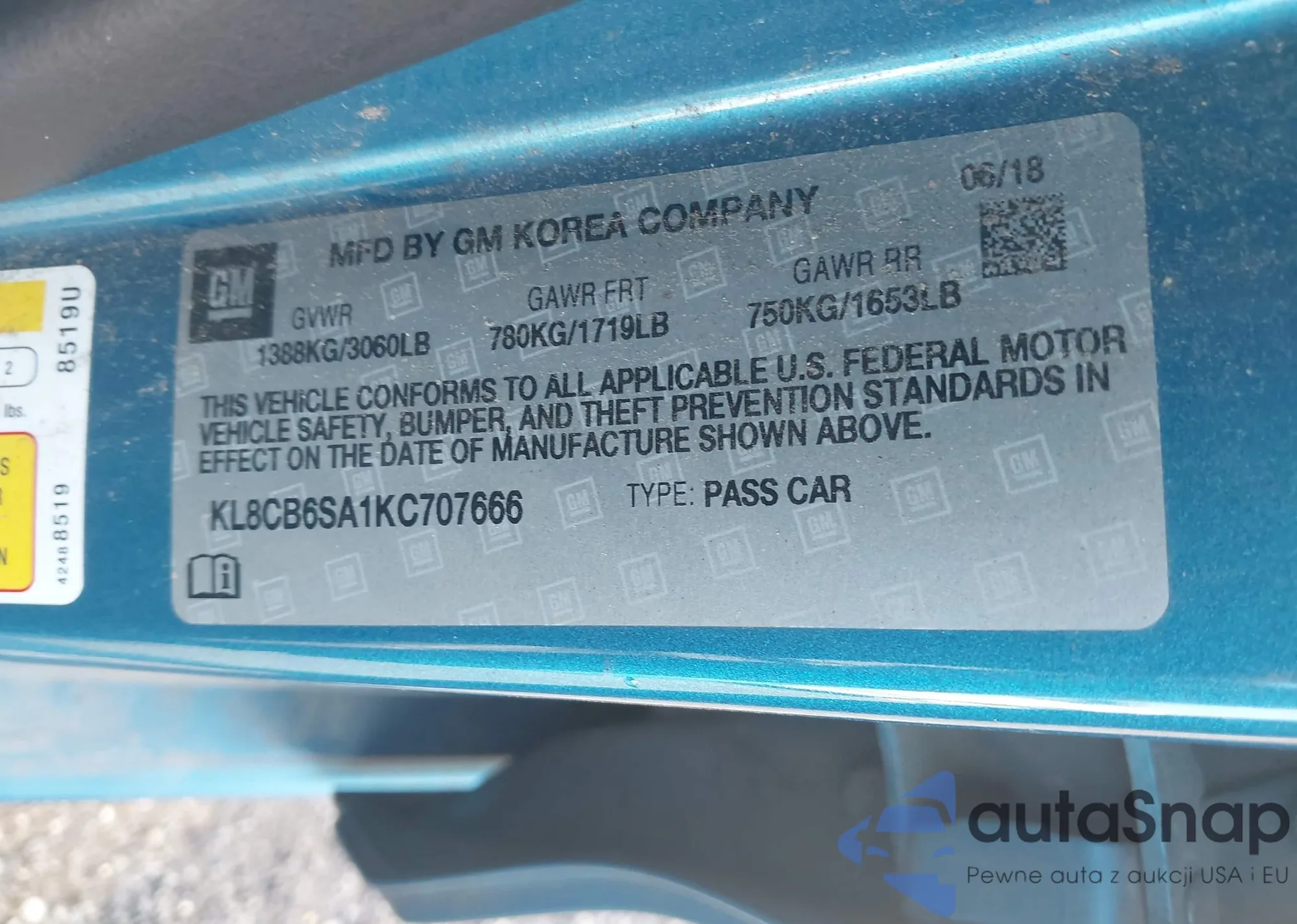 • VIN: KL8CB6SA1KC707666