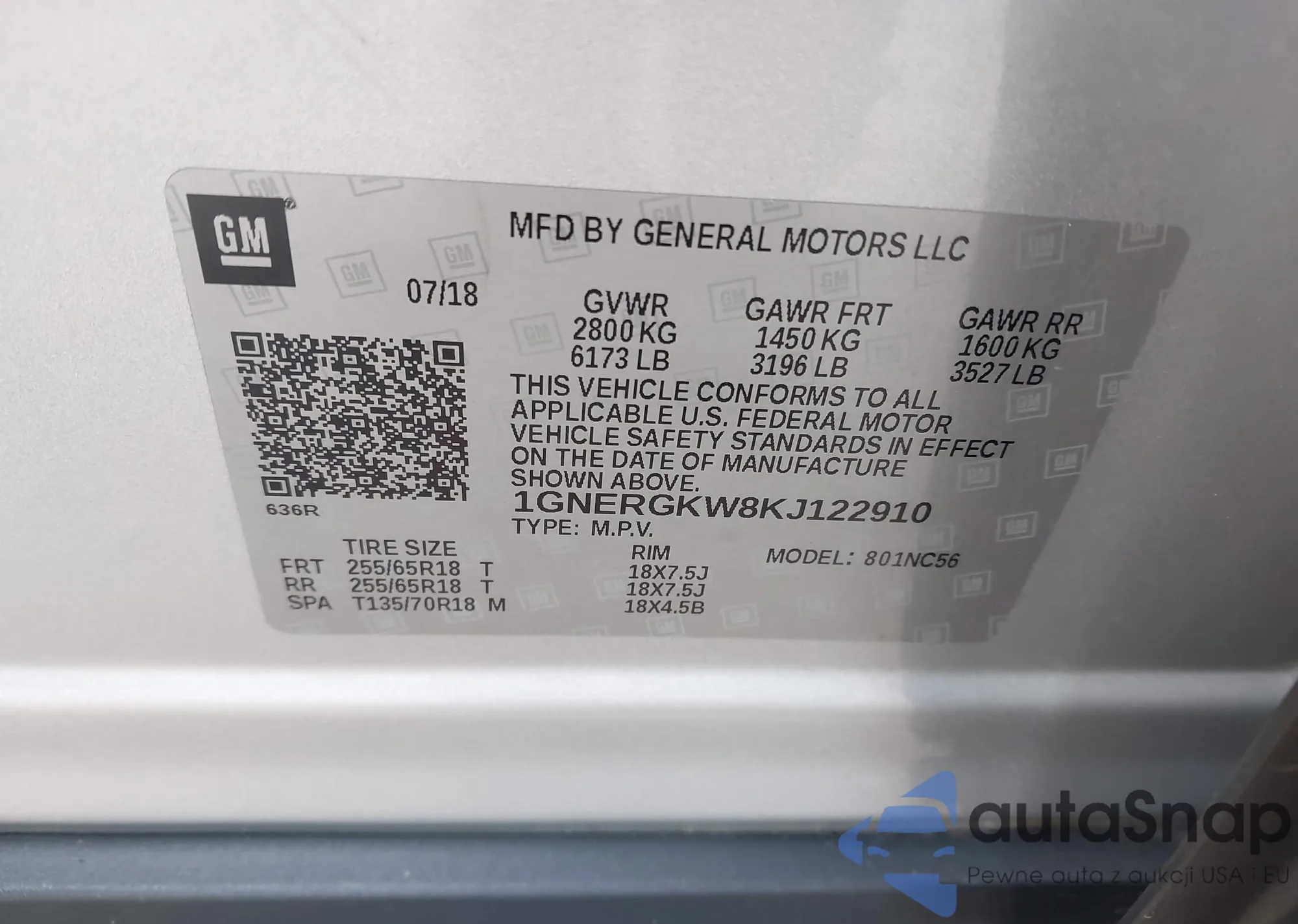 VIN: 1GNERGKW8KJ122910