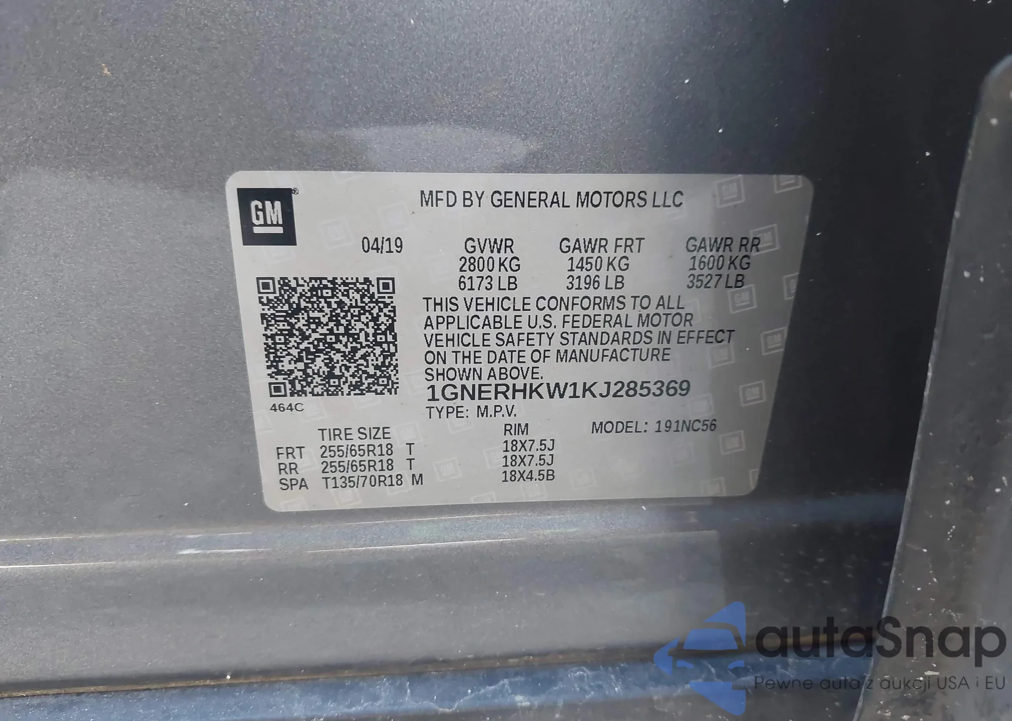 VIN: 1GNERHKW1KJ285369