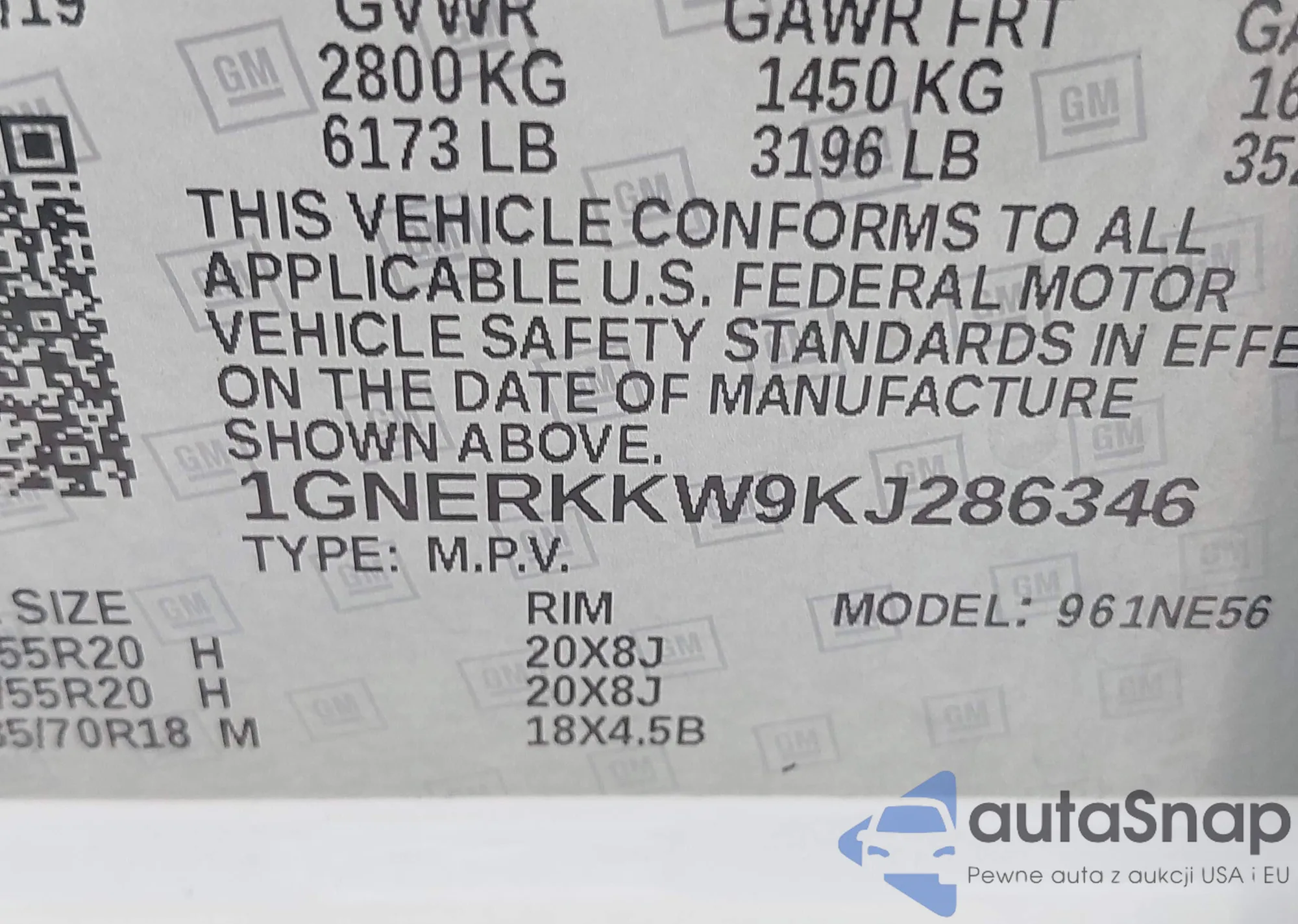VIN: 1GNERKKW9KJ286346