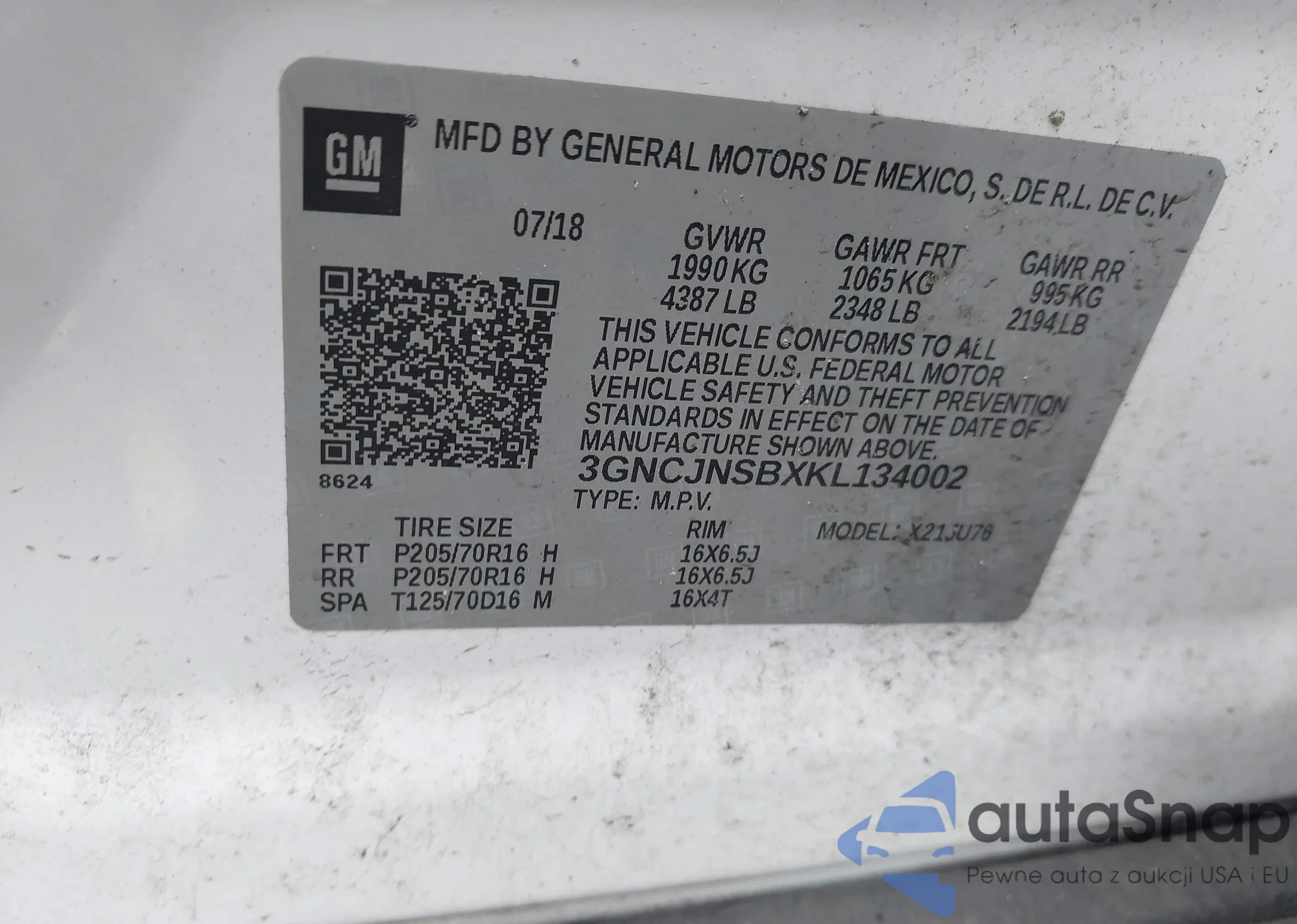 VIN: 3GNCJNSBXKL134002