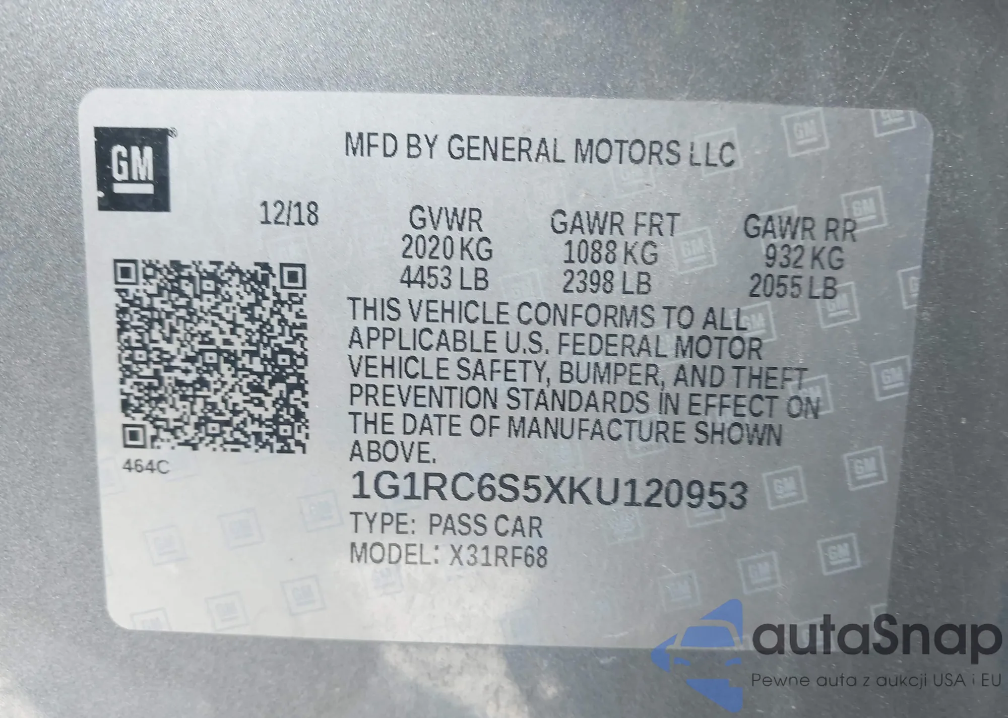 VIN: 1G1RC6S5XKU120953