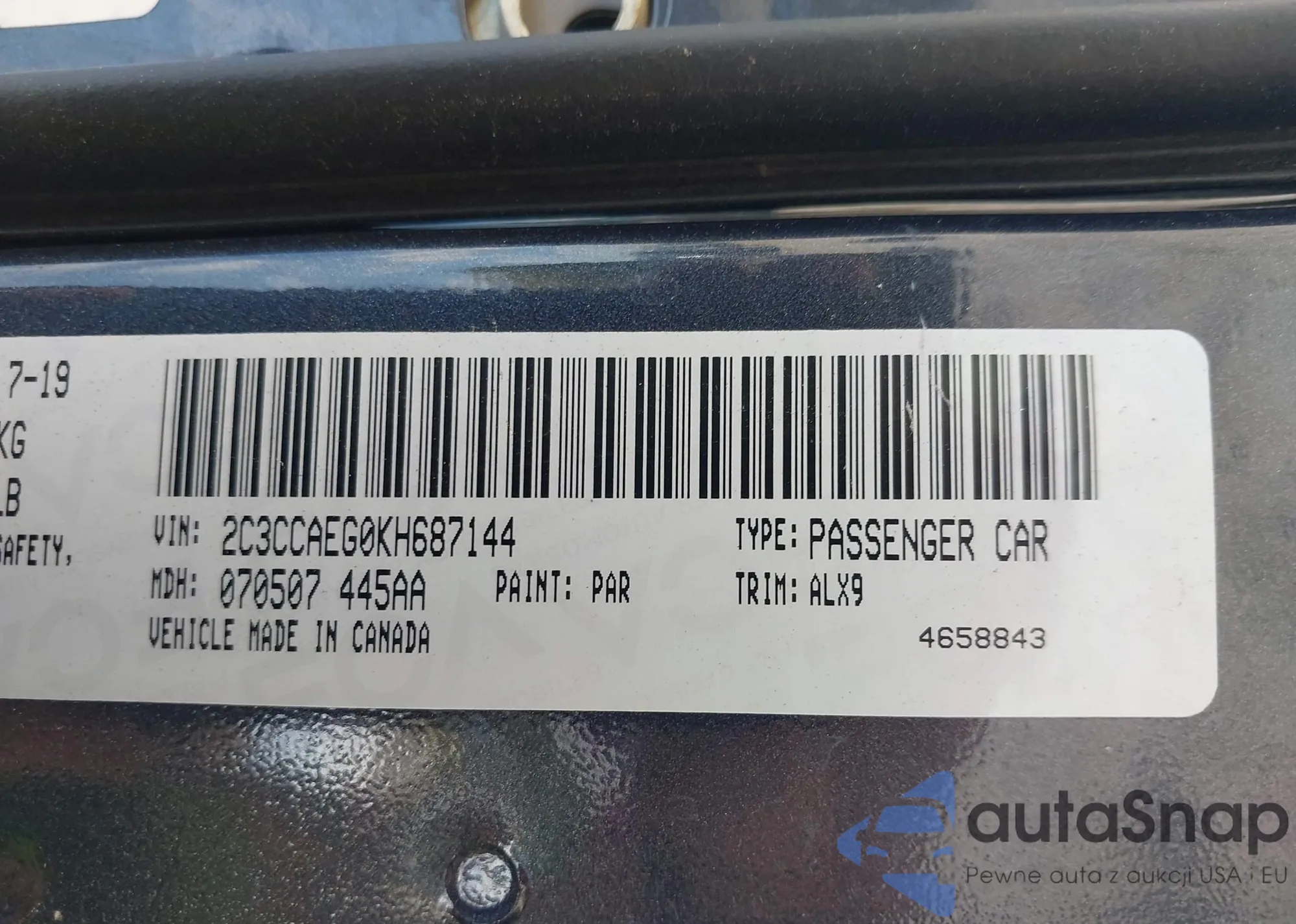 VIN: 2C3CCAEG0KH687144