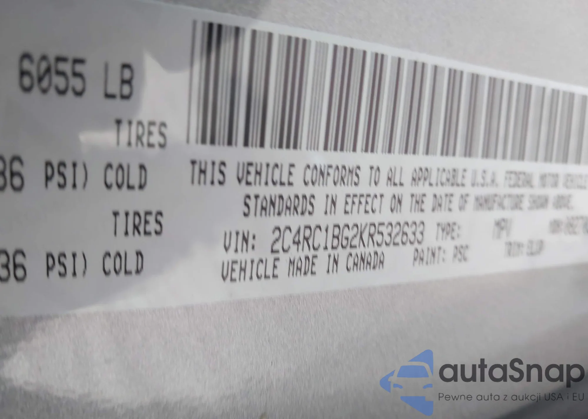 The car Chrysler Pacifica 2019 (VIN 2C4RC1BG2KR532633) has not been auctioned before. The documents are clean, and the mileage matches or is below the market average. Sold by an insurance company – we recommend purchase. Delivery to the port will take approx. 6–8 weeks.