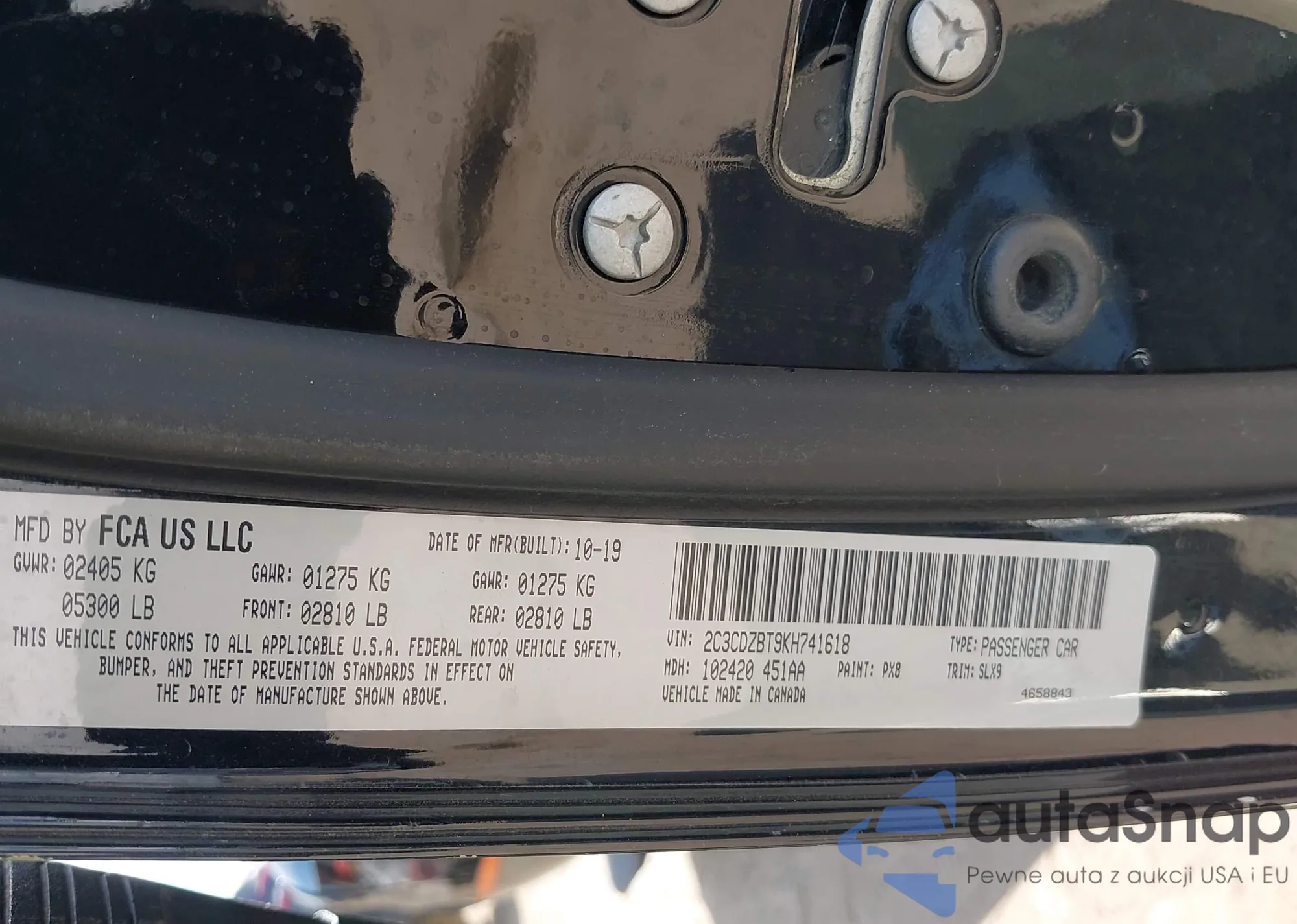 VIN: 2C3CDZBT9KH741618