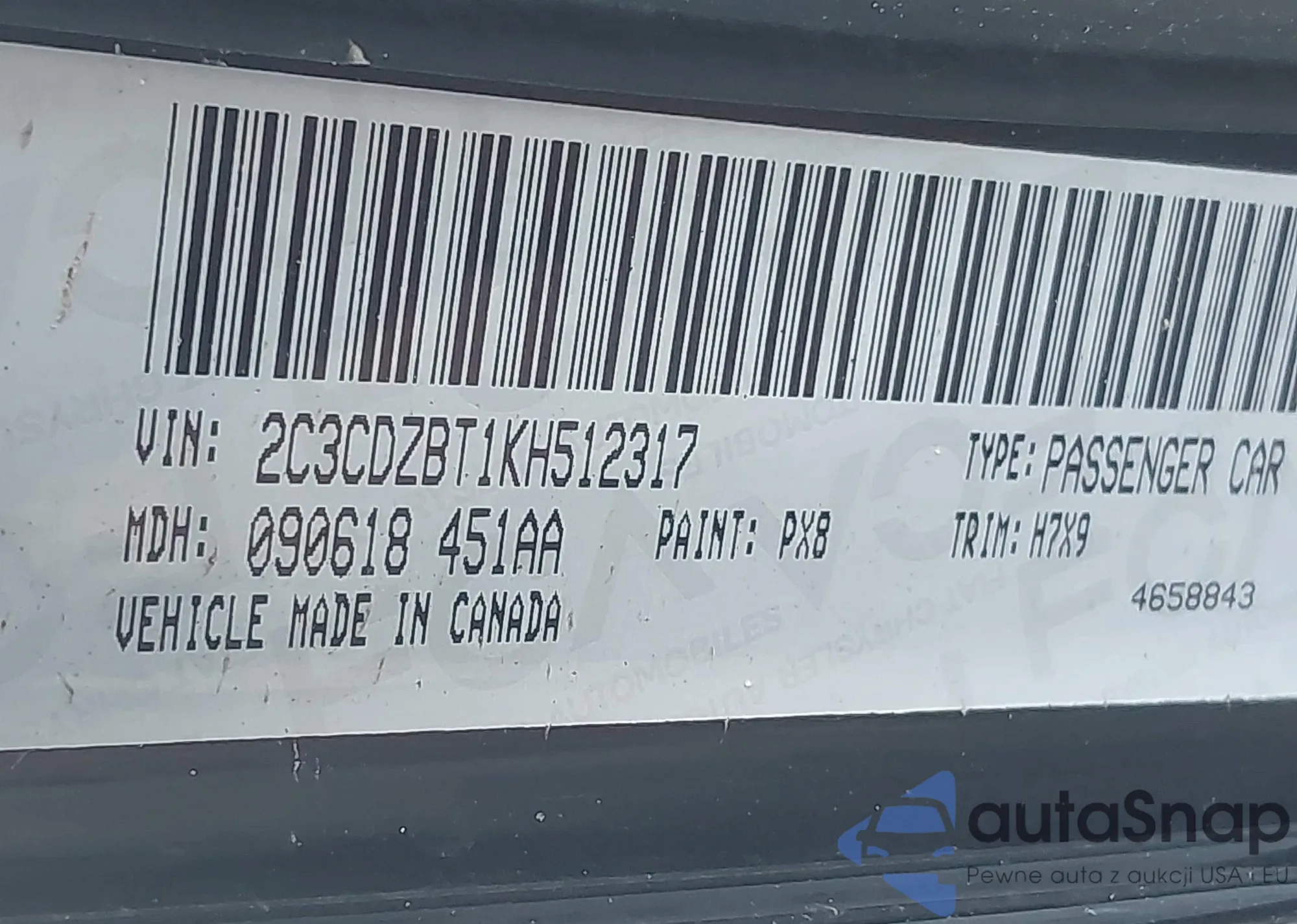 VIN: 2C3CDZBT1KH512317