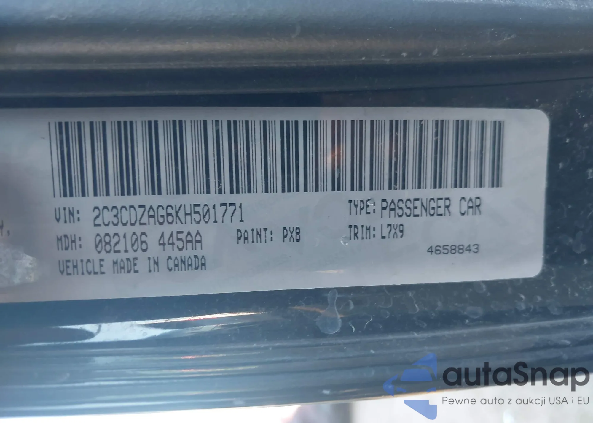 VIN: 2C3CDZAG6KH501771