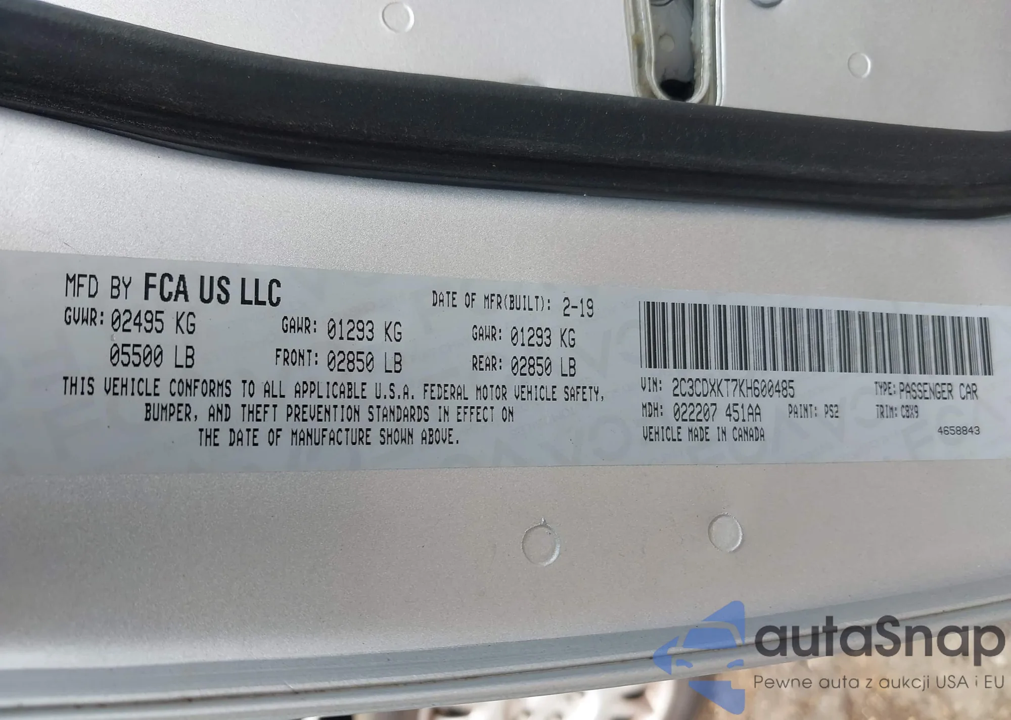 • VIN: 2C3CDXKT7KH600485