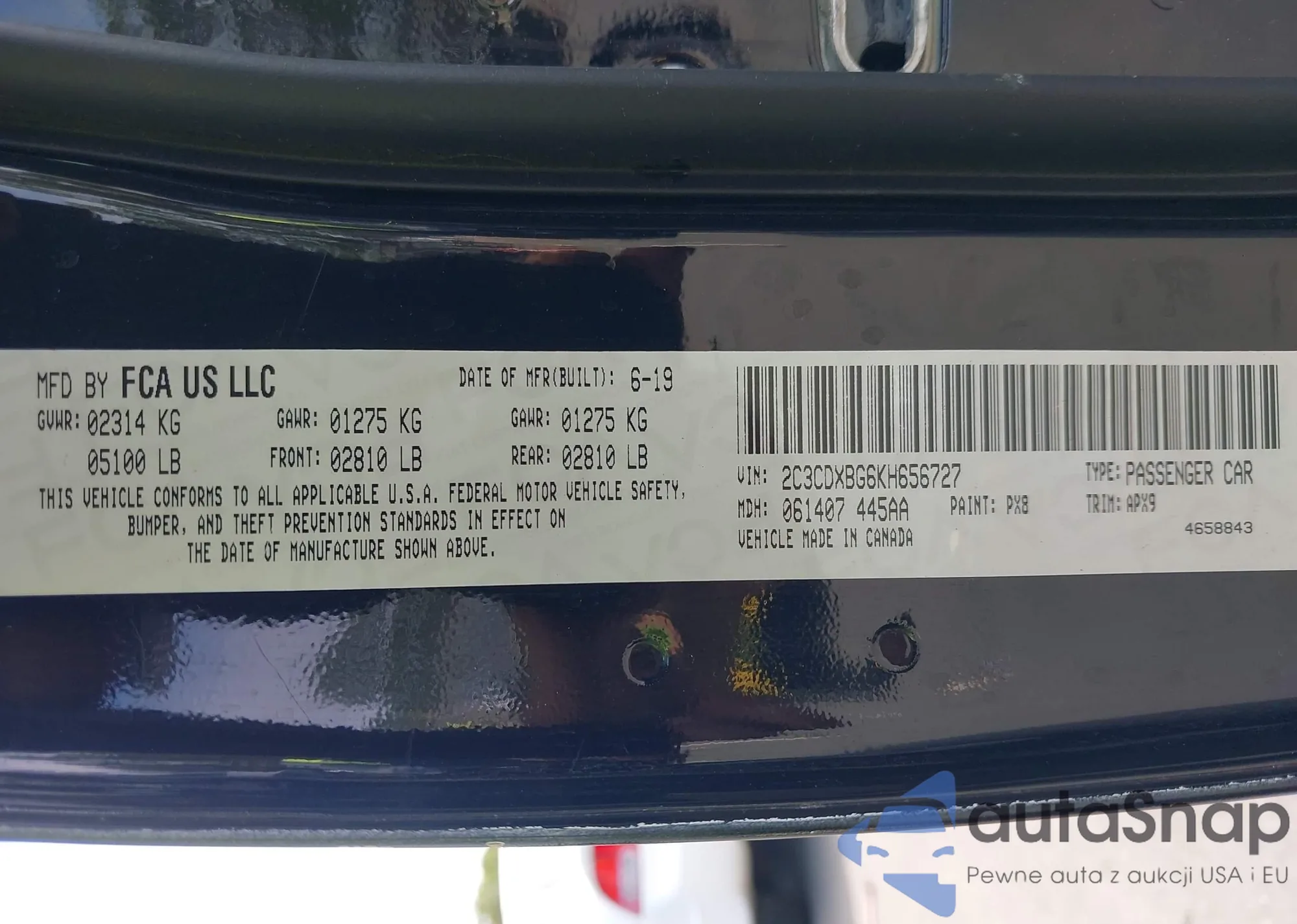 VIN: 2C3CDXBG6KH656727