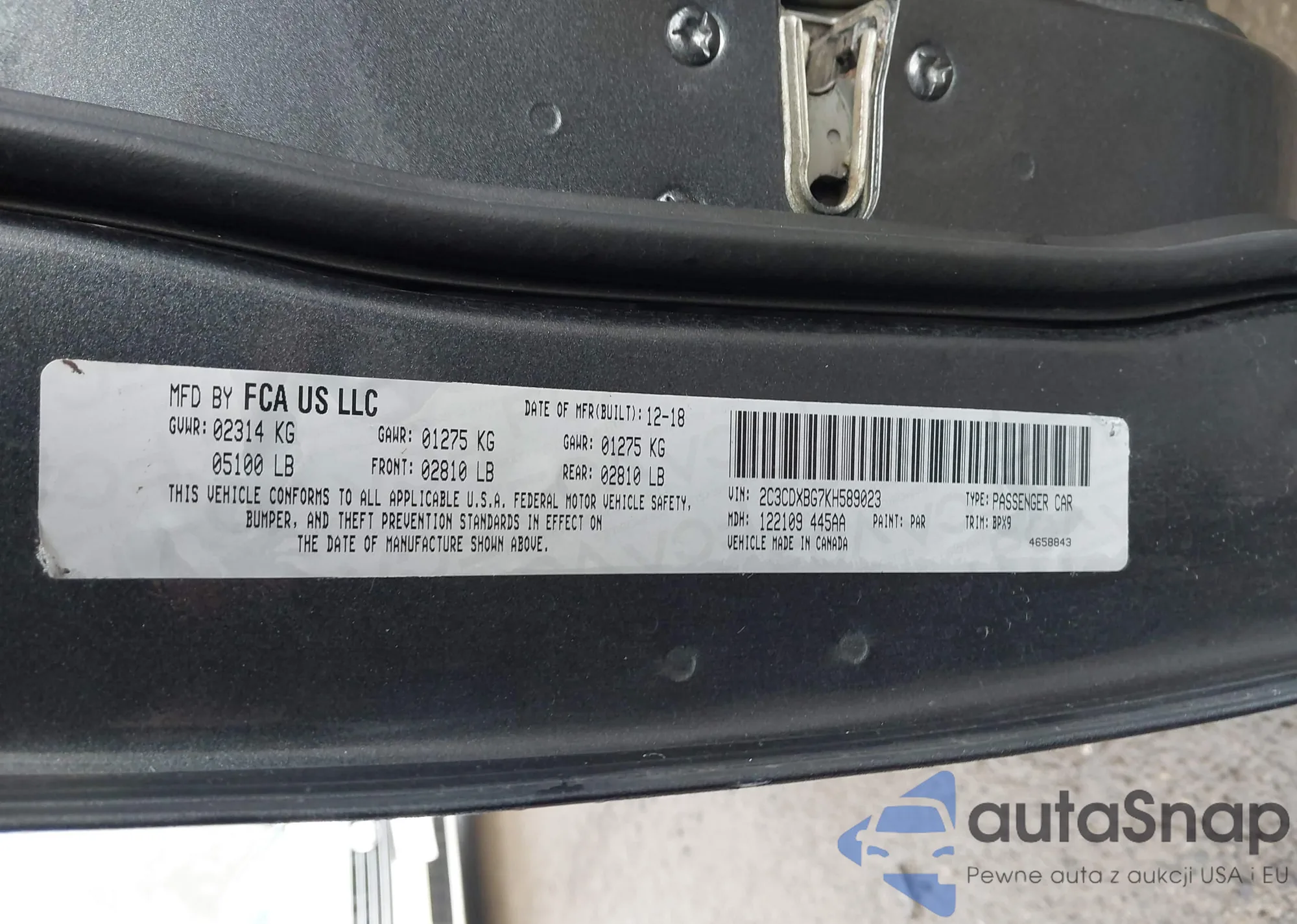VIN: 2C3CDXBG7KH589023