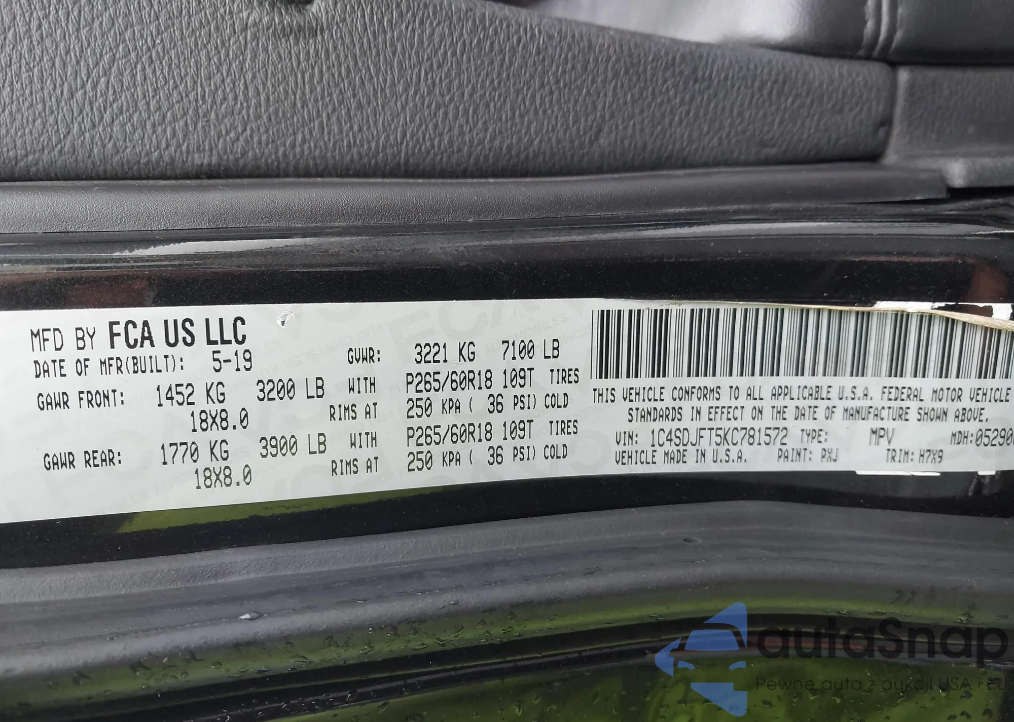 VIN: 1C4SDJFT5KC781572