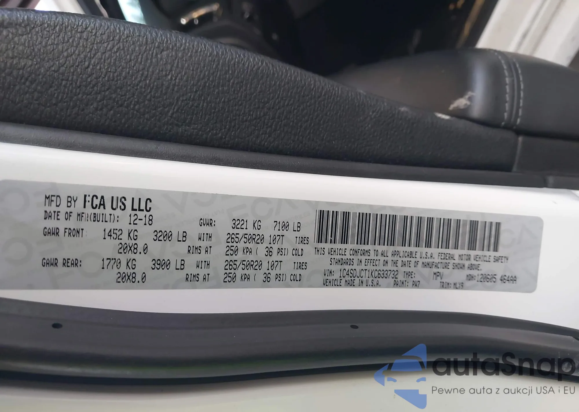 VIN: 1C4SDJCT1KC633732