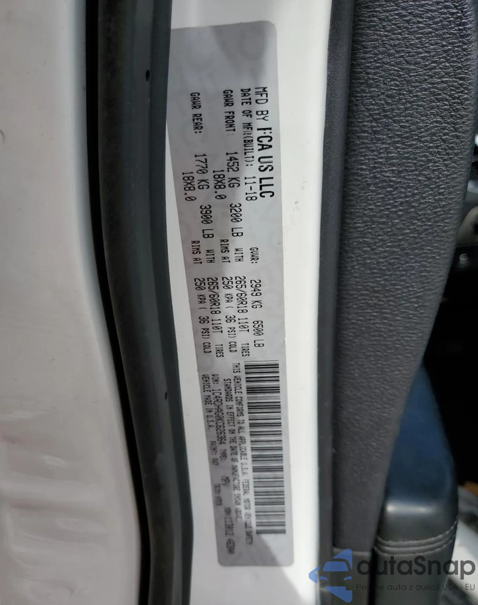 VIN: 1C4RDHAG0KC626364