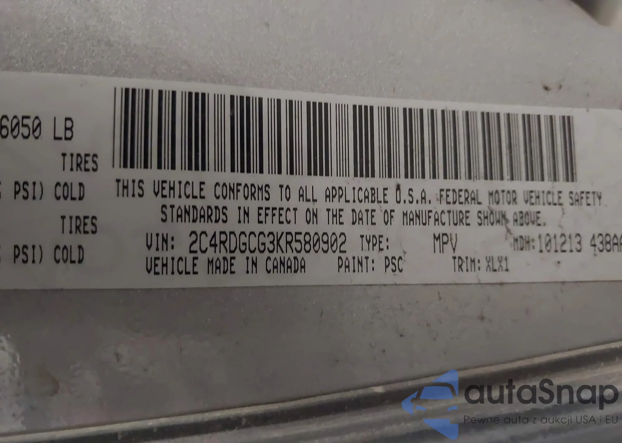 VIN: 2C4RDGCG3KR580902
