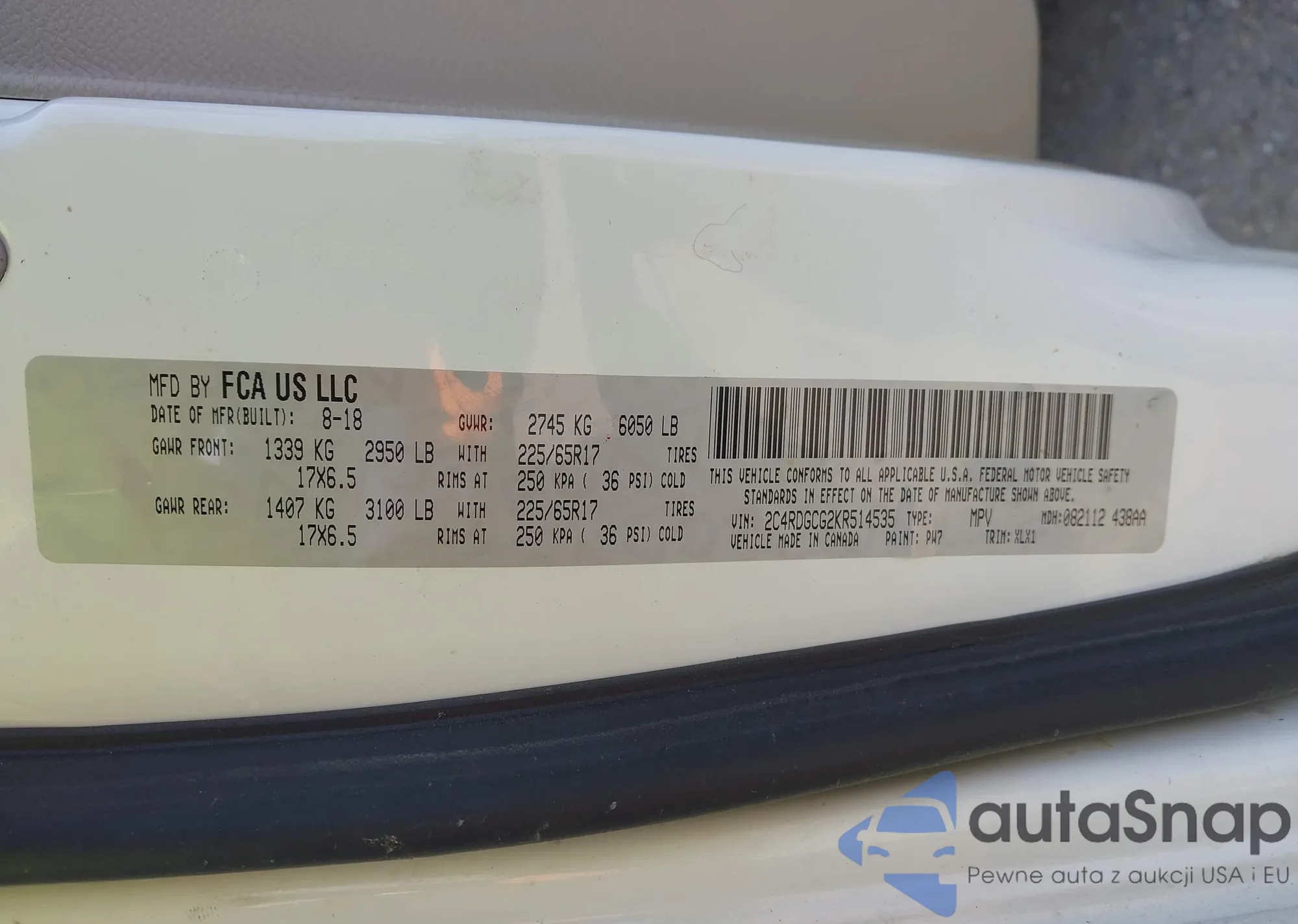 The car Dodge Caravan 2019 (VIN 2C4RDGCG2KR514535) has already been auctioned 1 times and/or is sold by an unverified seller. We recommend checking the Carfax report and confirming registration possibilities before purchase.
