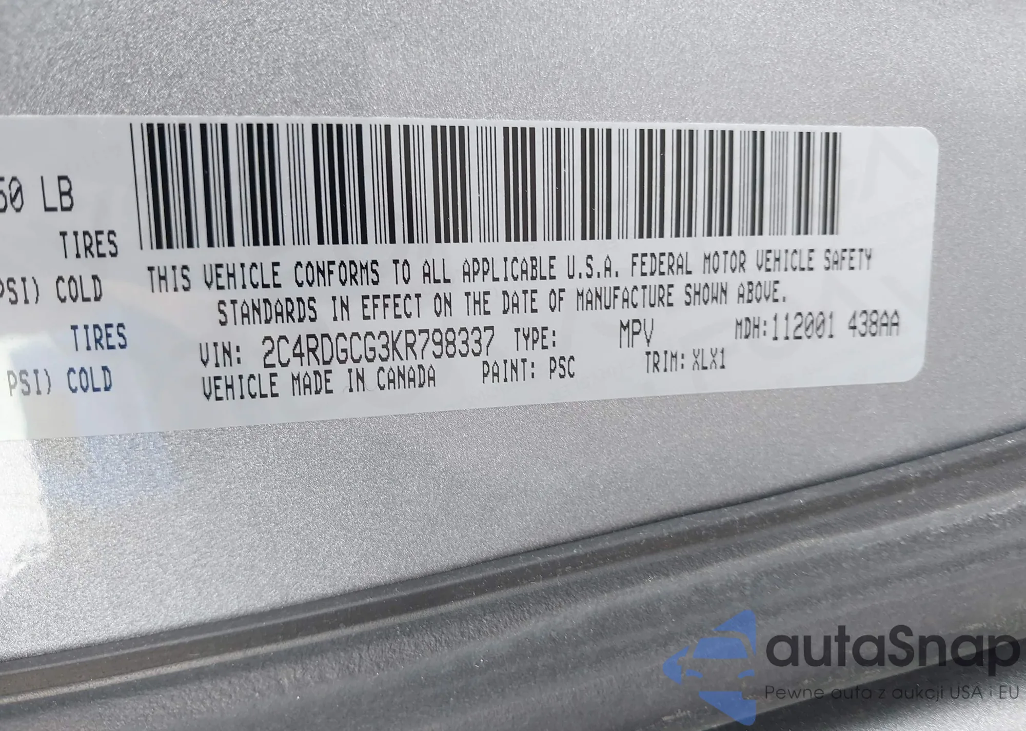 VIN: 2C4RDGCG3KR798337