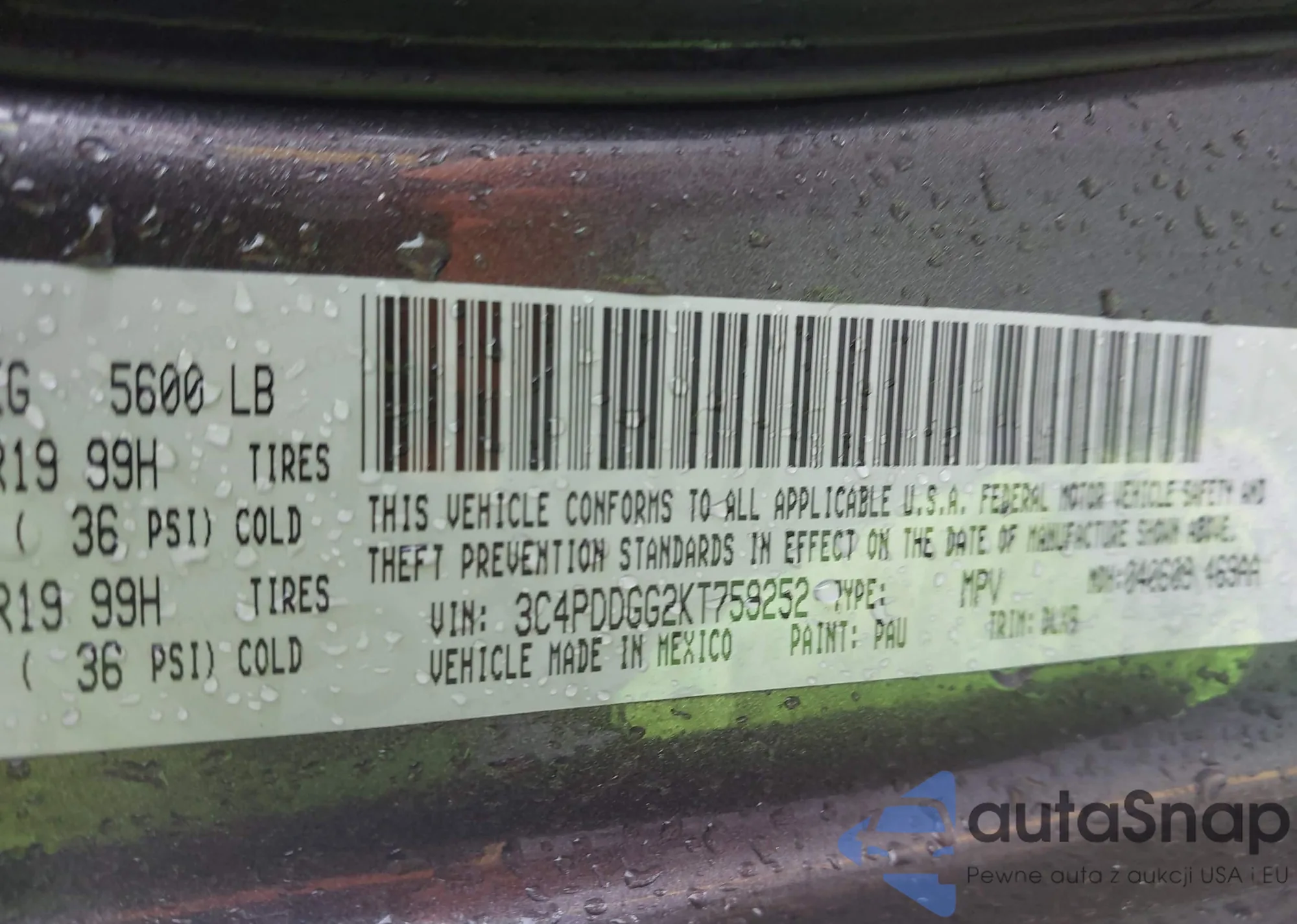 VIN: 3C4PDDGG2KT759252