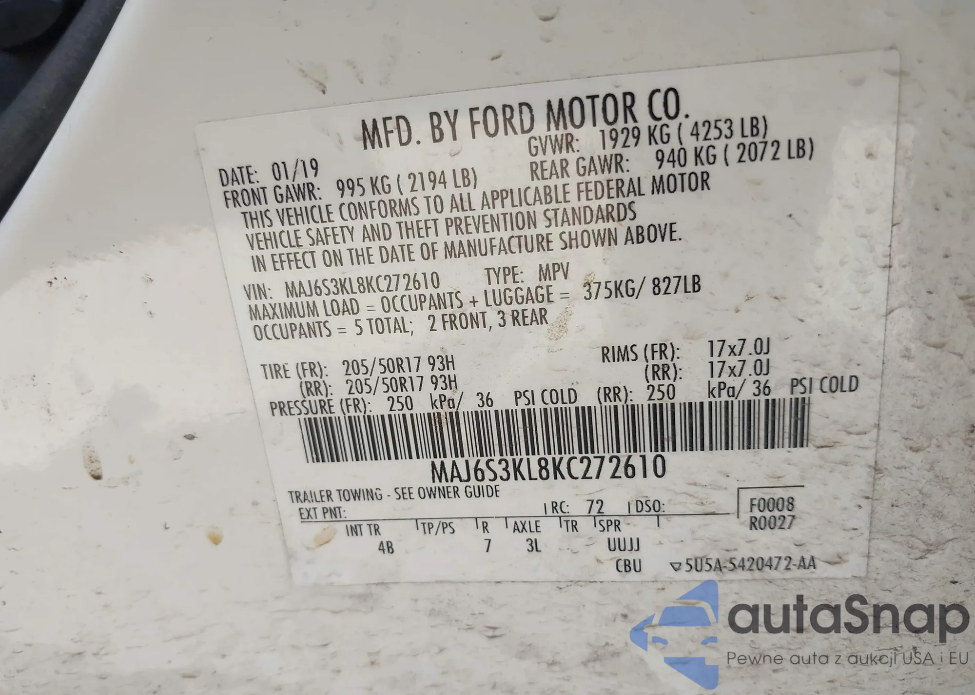 VIN: MAJ6S3KL8KC272610