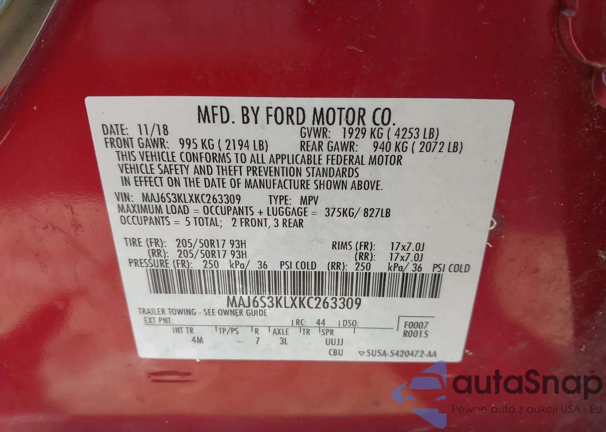 VIN: MAJ6S3KLXKC263309