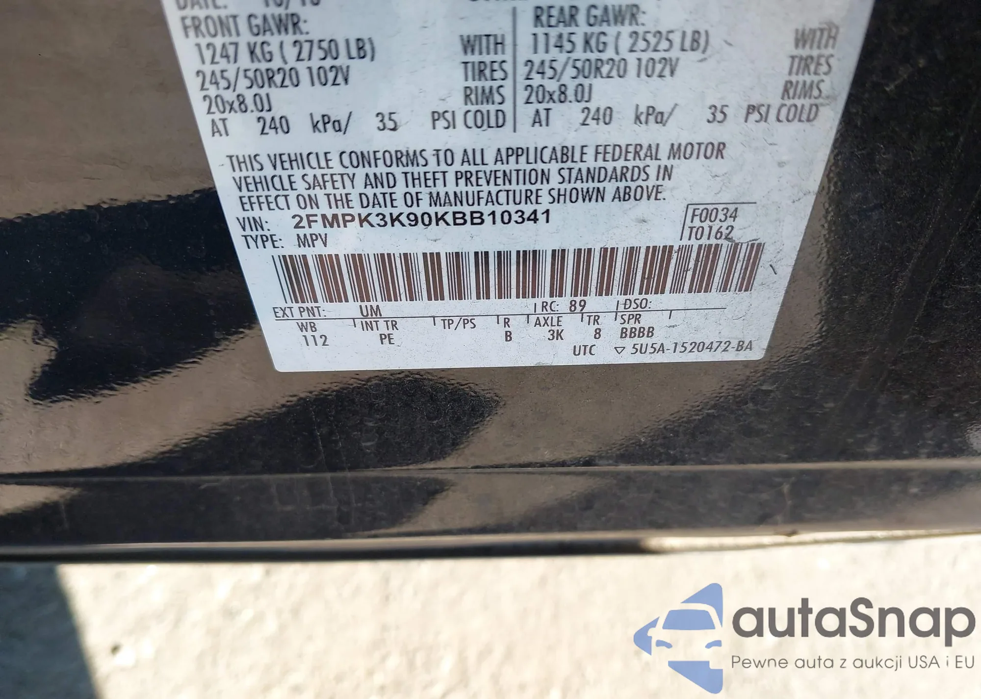 VIN: 2FMPK3K90KBB10341