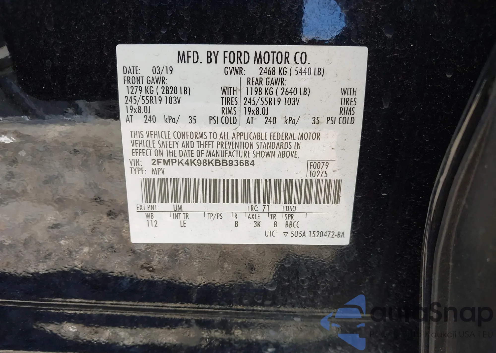 VIN: 2FMPK4K98KBB93684
