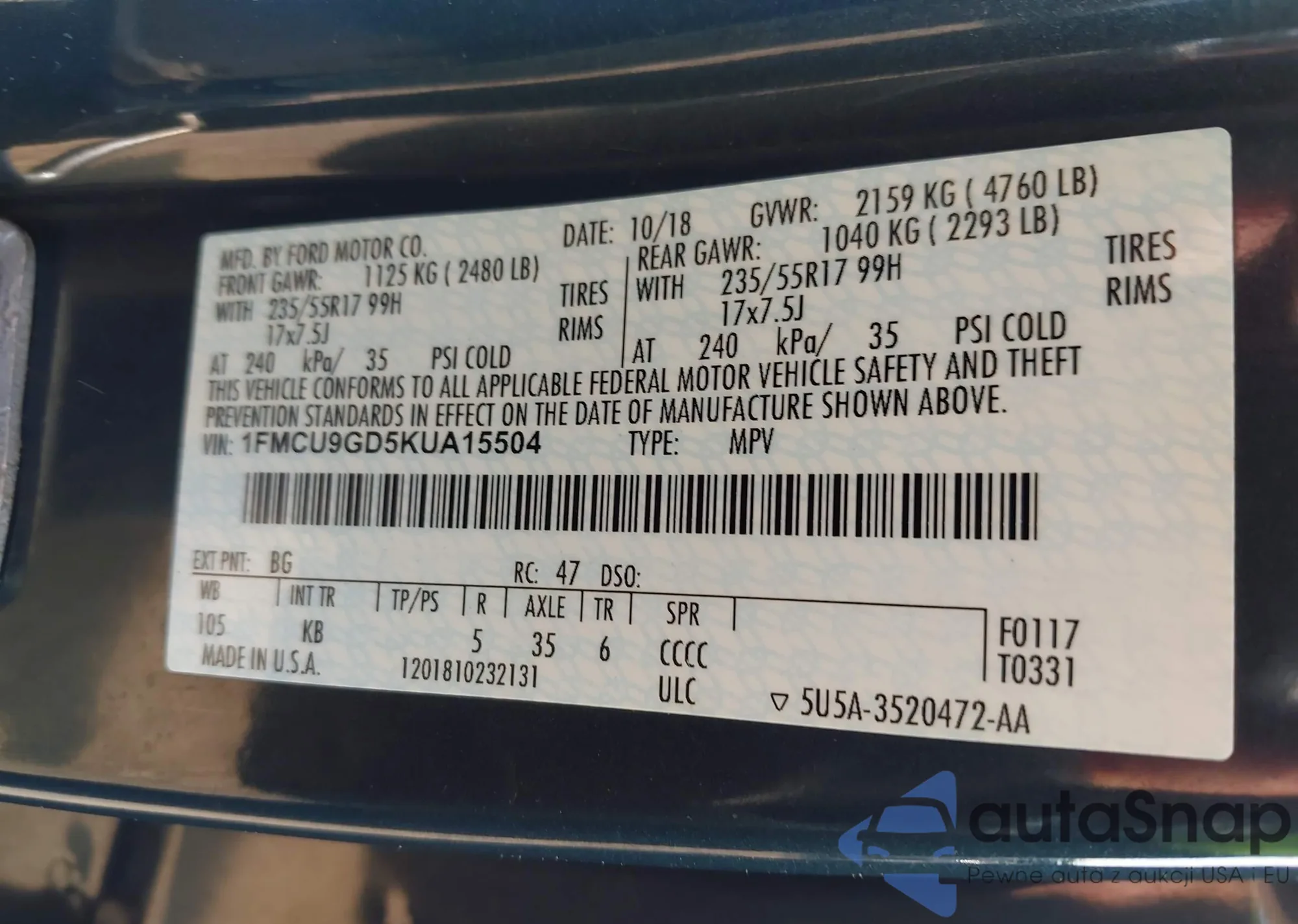 VIN: 1FMCU9GD5KUA15504