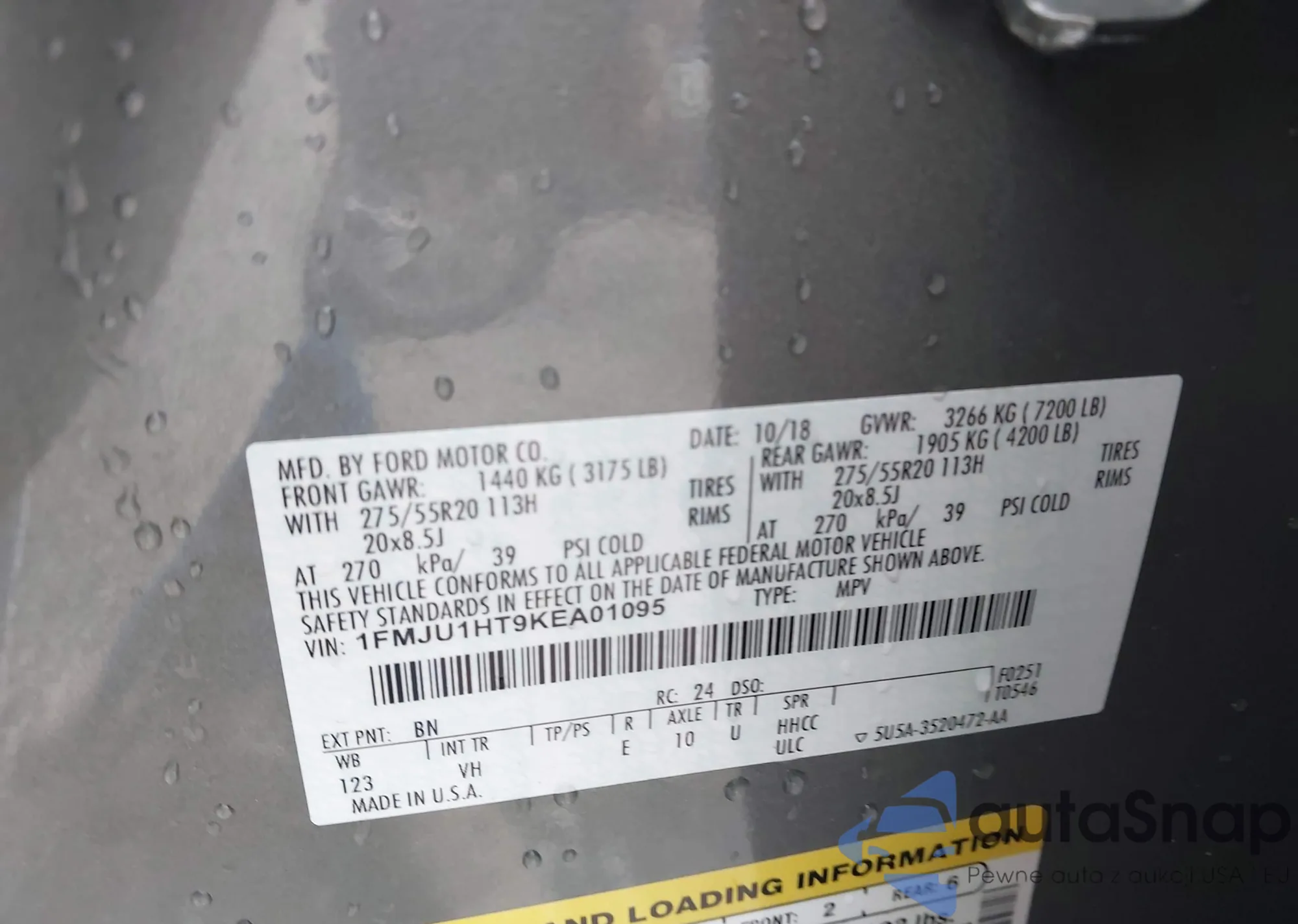 VIN: 1FMJU1HT9KEA01095