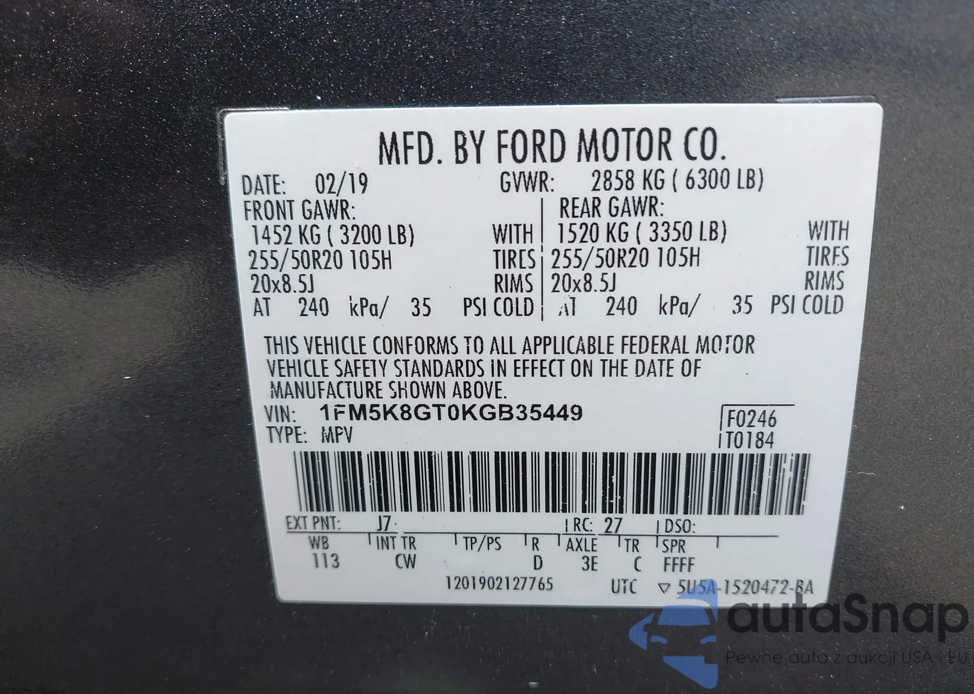 VIN: 1FM5K8GT0KGB35449