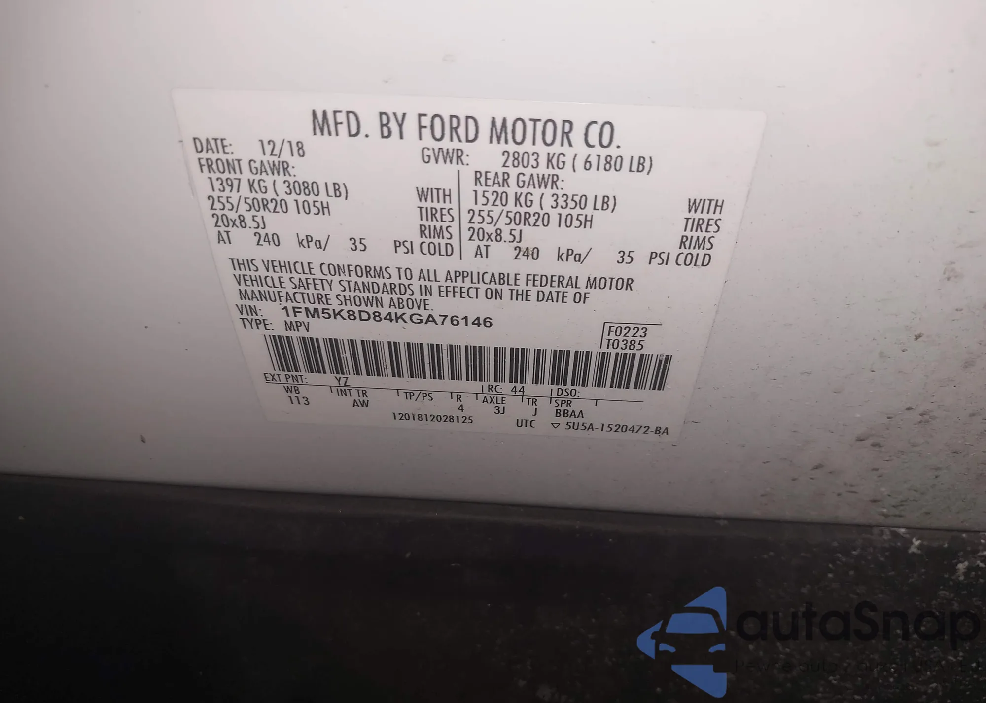 The car Ford Explorer 2019 (VIN 1FM5K8D84KGA76146) has not been auctioned before. The documents are clean, and the mileage matches or is below the market average. Sold by an insurance company – we recommend purchase. Delivery to the port will take approx. 6–8 weeks.