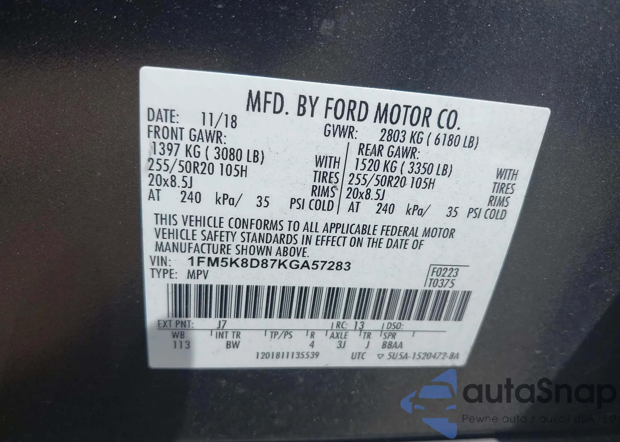 VIN: 1FM5K8D87KGA57283