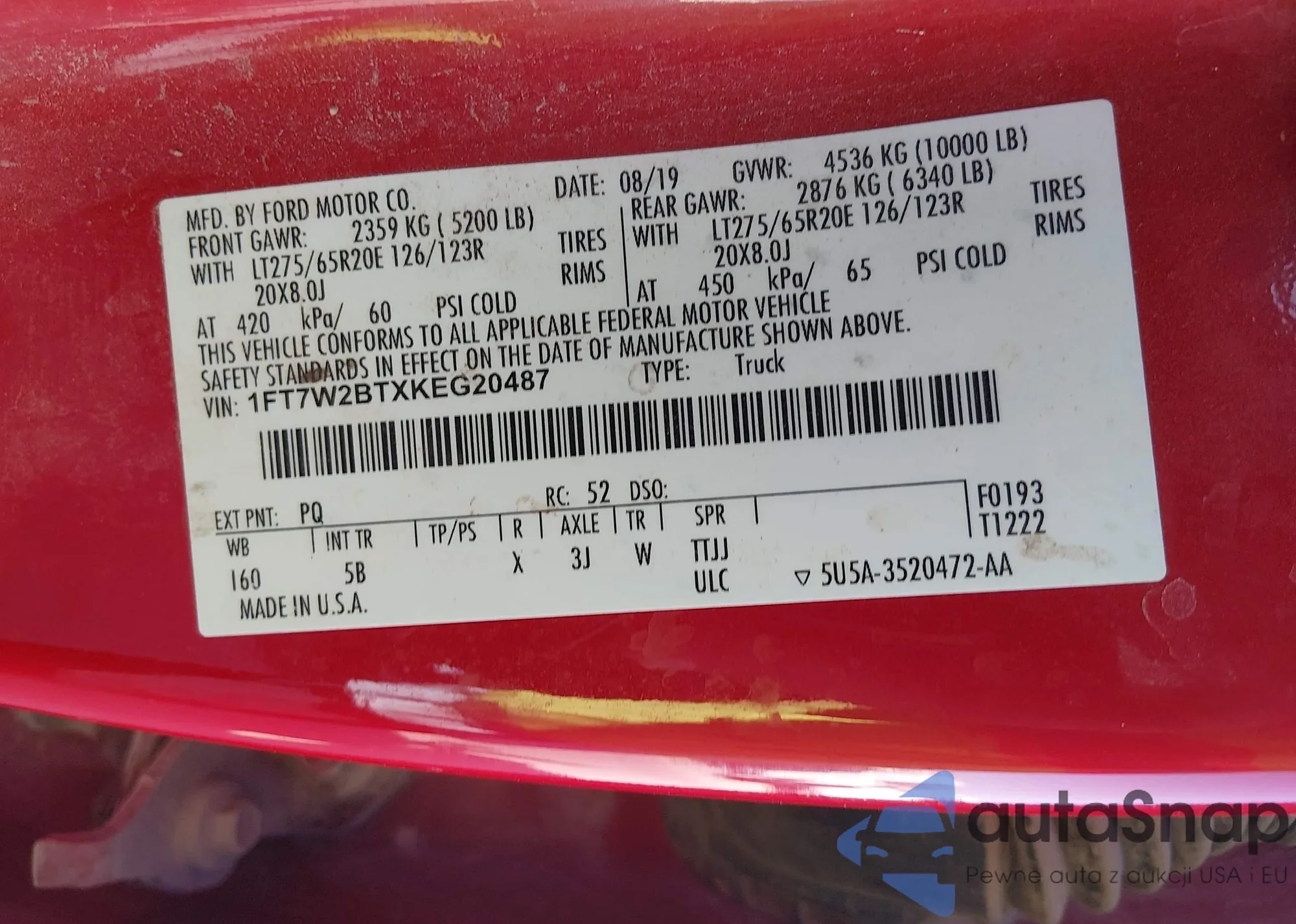 VIN: 1FT7W2BTXKEG20487